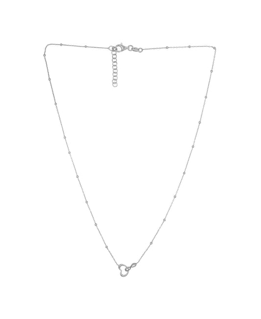 Silver Heart Paper Clip Cubic Zirconia 16" Necklace