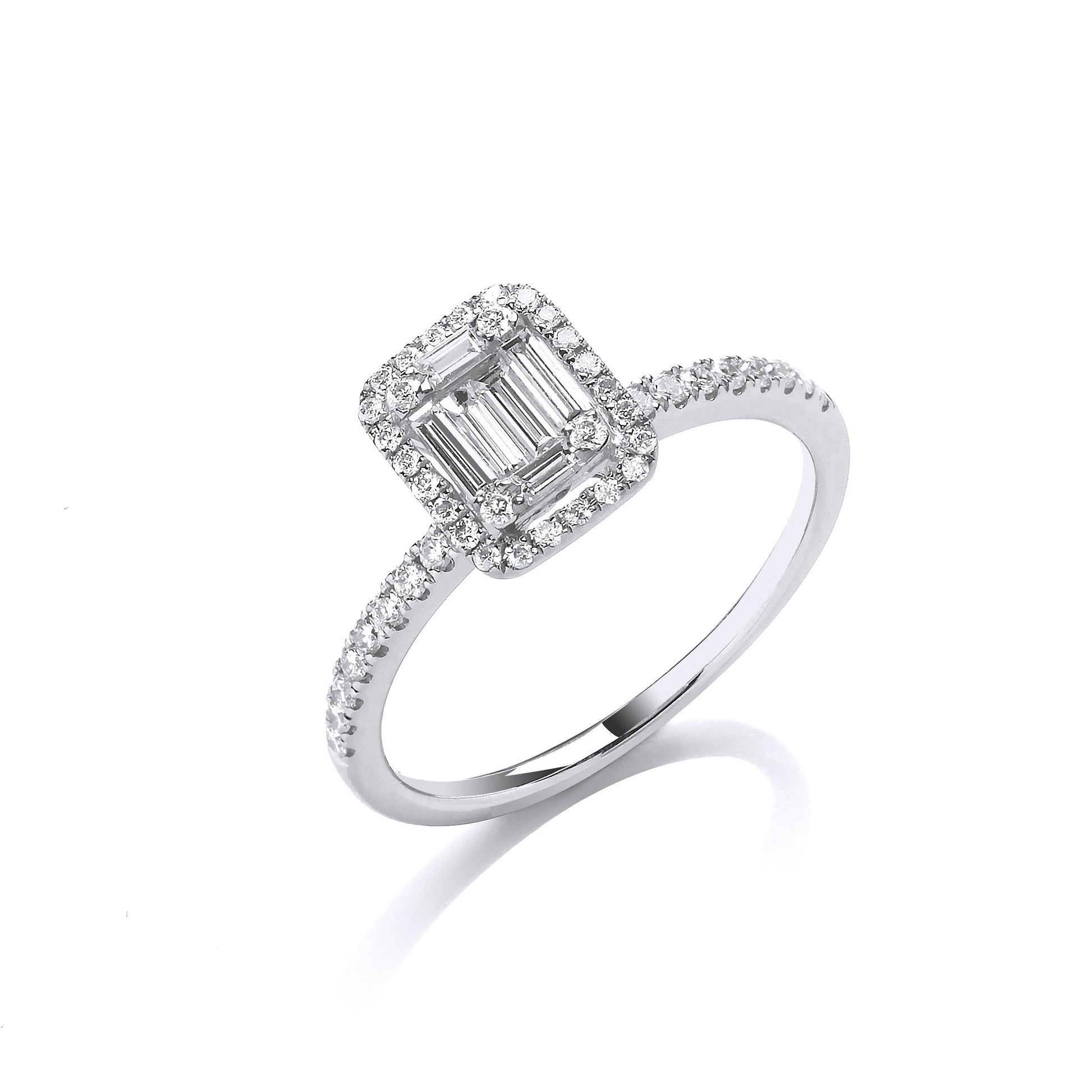 18ct White Gold 0.50ct Baguette & Brilliant Cut Diamonds Rectangle Halo Ring