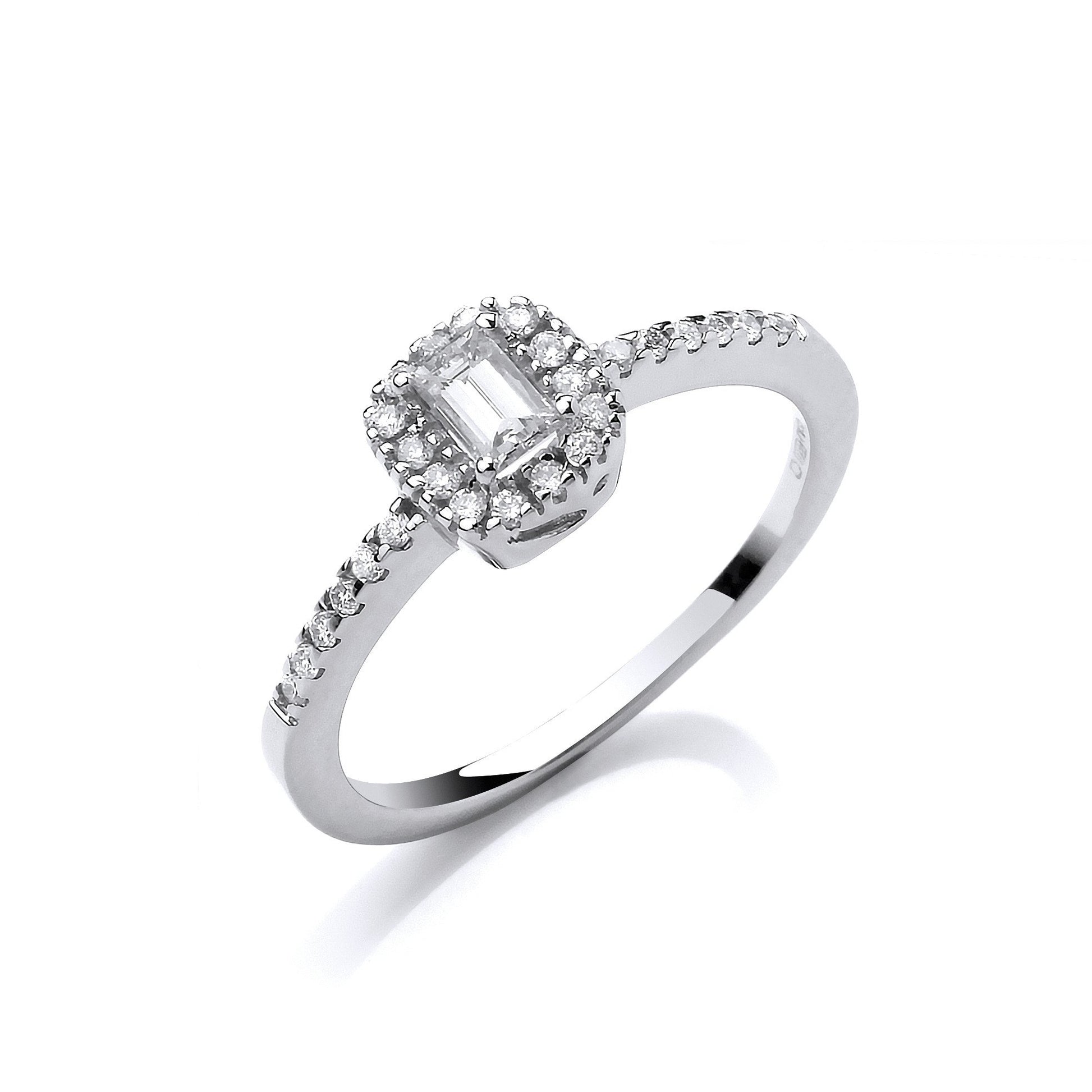 18ct White Gold 0.50ct Emerald Cut Centre Diamond Ring