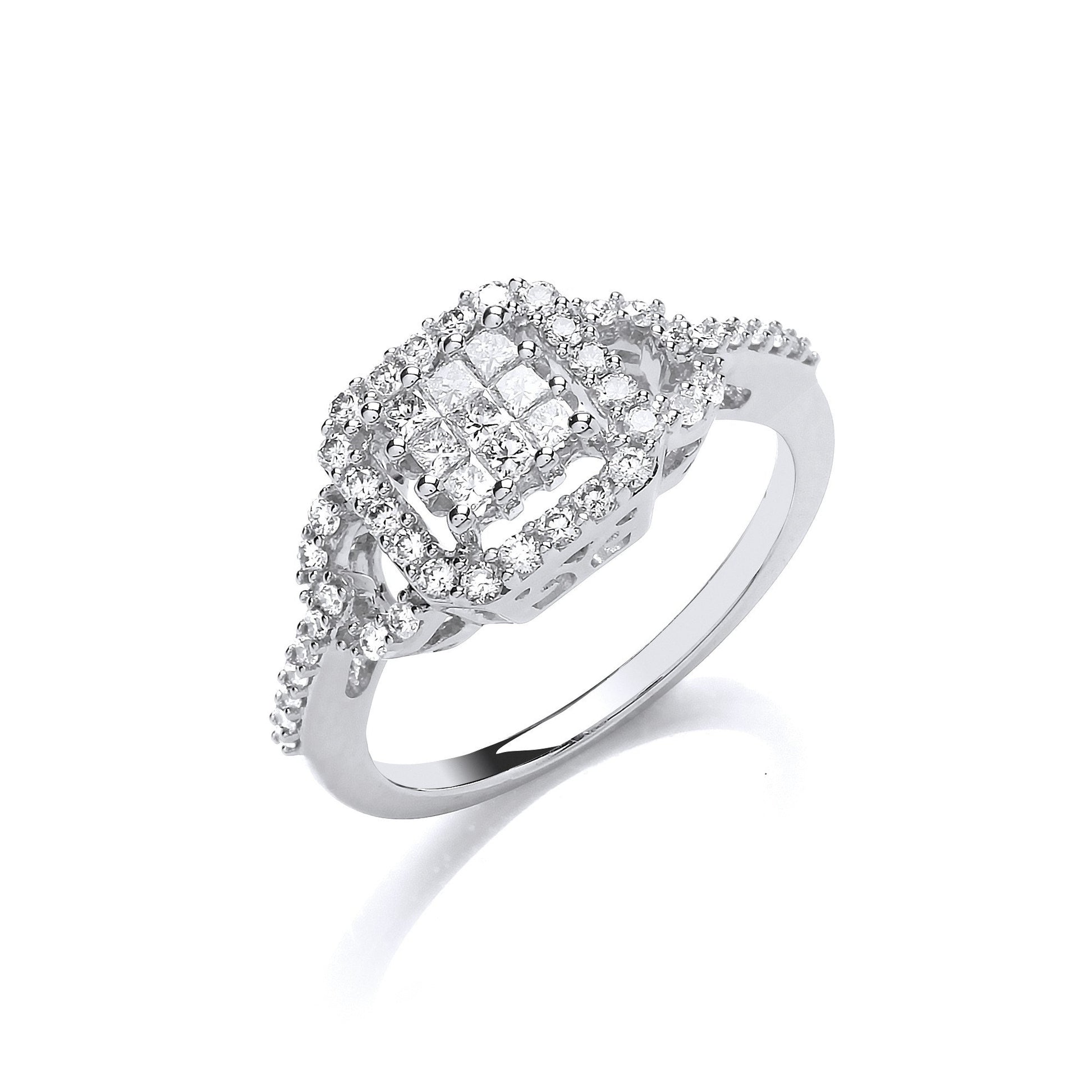 18ct White Gold 0.50ct Square Halo Ring