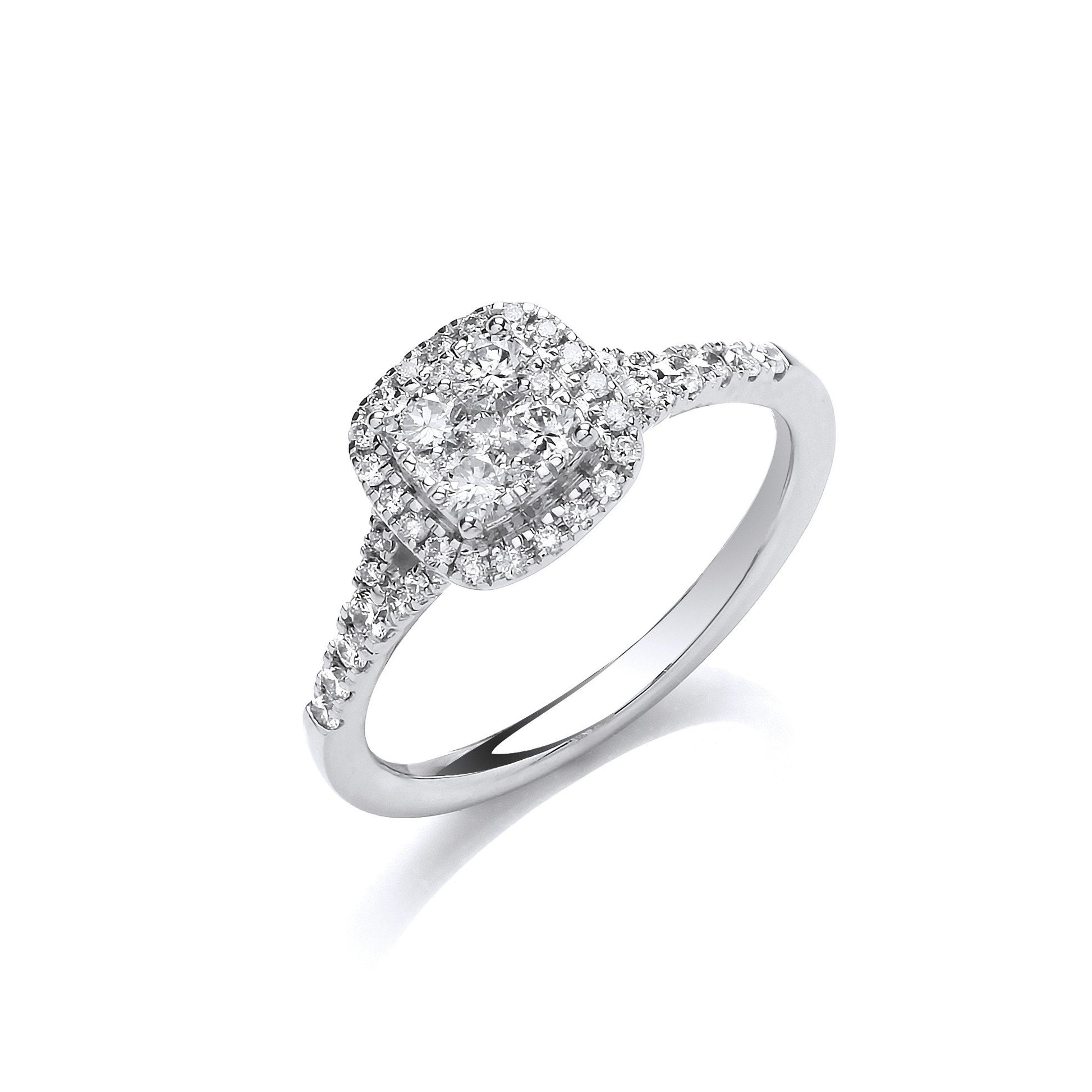 18ct White Gold 0.55ct Split Shoulder Halo Ring