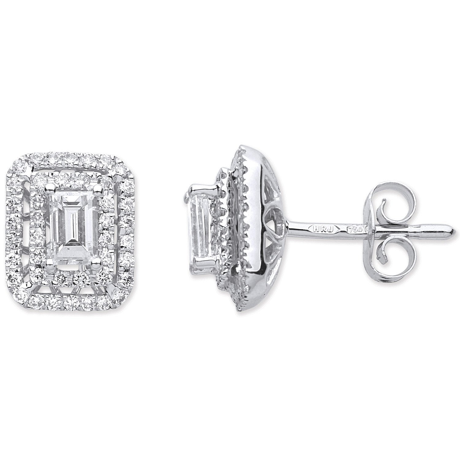 18ct White Gold 0.70ct Emerald Cut Rectangular Stud
