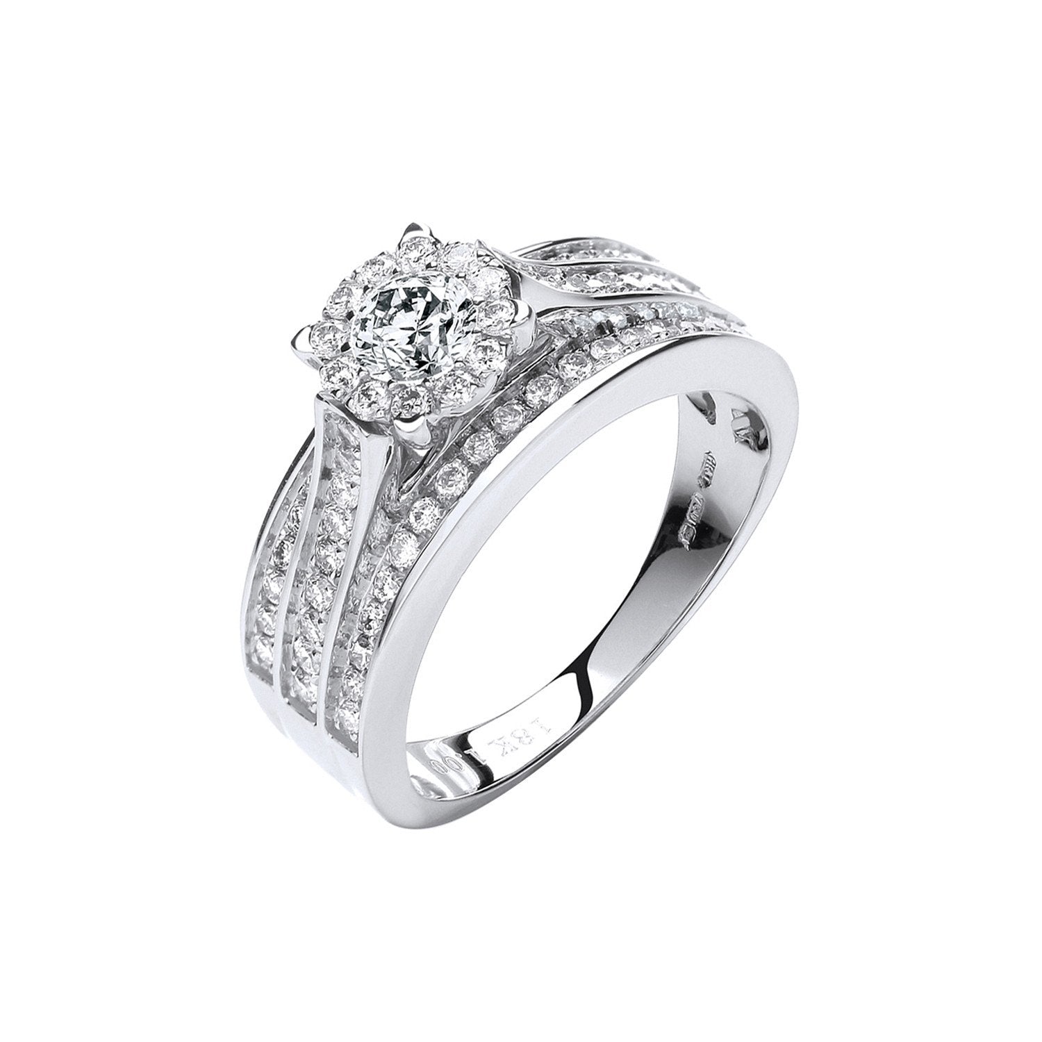 This exquisite 18ct white gold diamond dress ring strikes the perfect balance between understated elegance and luxurious glamour, making it a timeless addition to any jewellery collection.