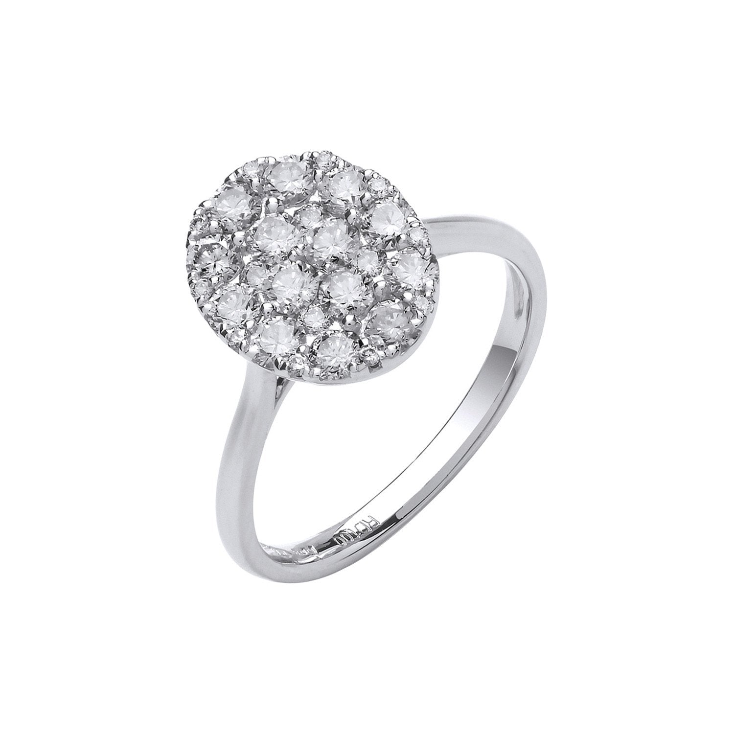 This exquisite 18ct white gold oval dress ring strikes the perfect balance between understated elegance and sophisticated glamour, making it a timeless piece of jewellery.