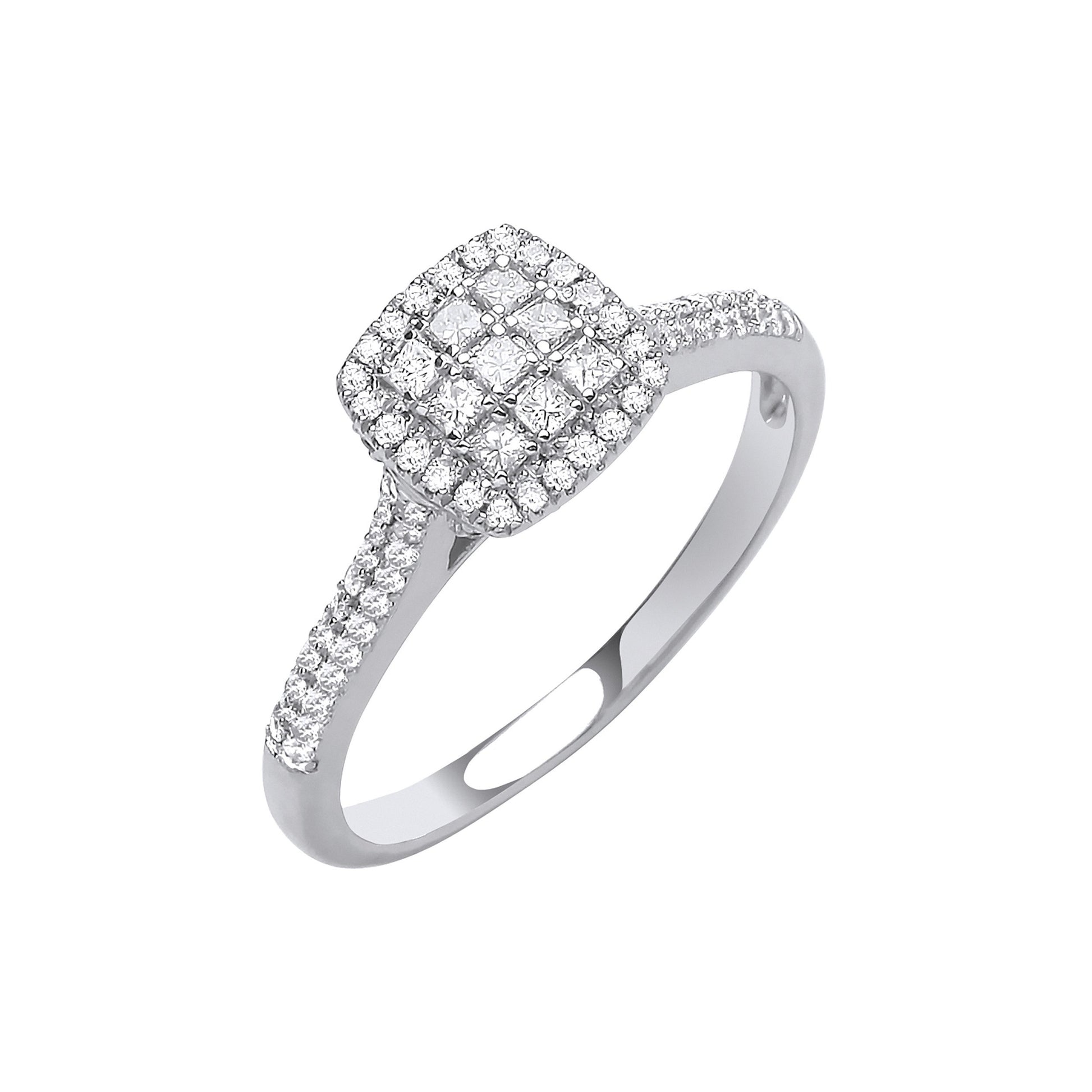 18ct White Gold Square Halo Style 0.50ct Diamond Ring