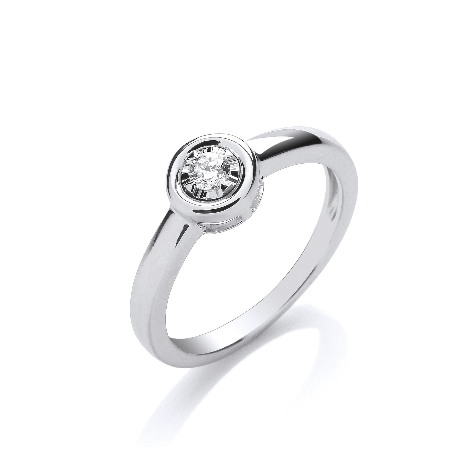 9ct White Gold 0.10ct Rub-Over Illusion Set Ring