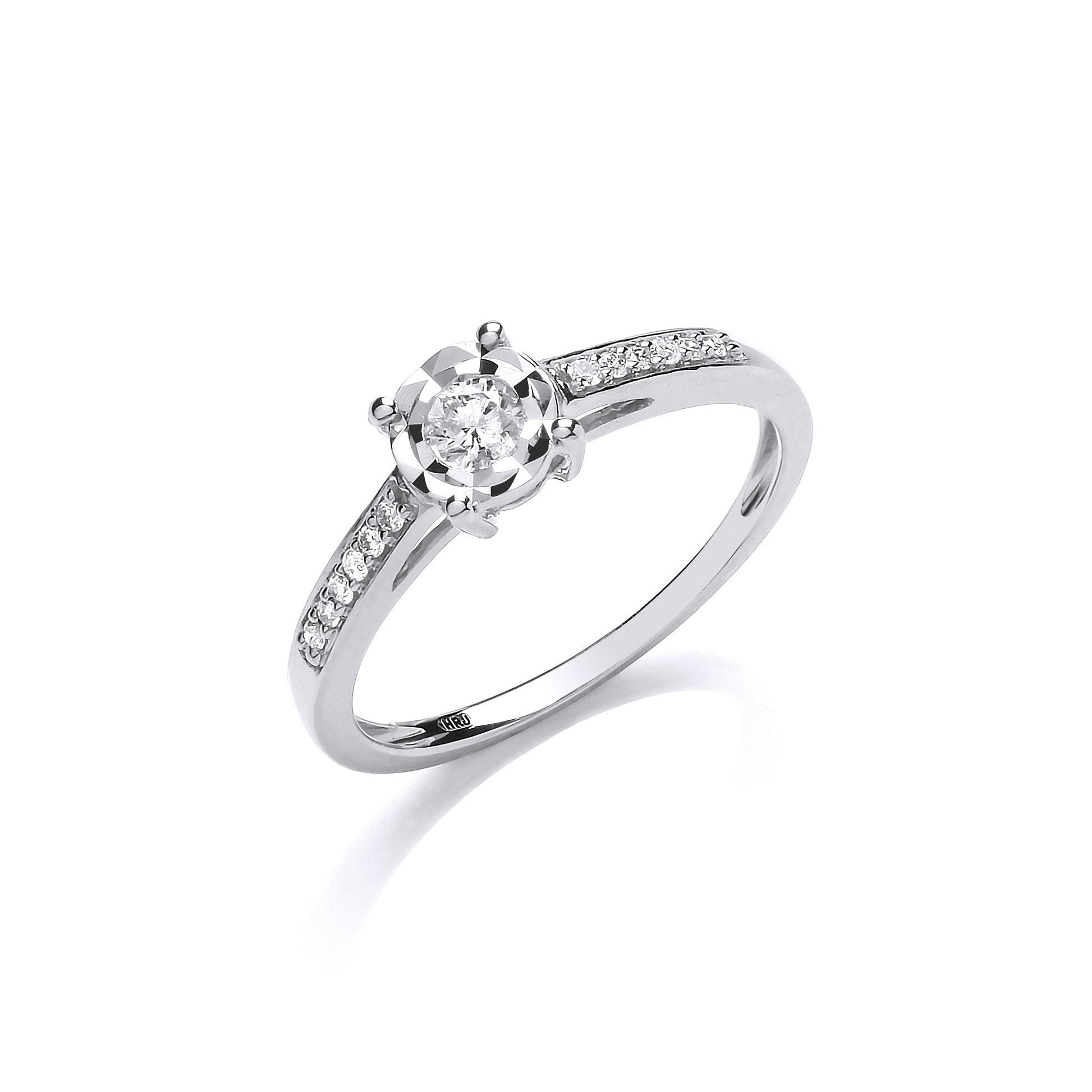 This 9ct white gold solitaire ring is a timeless choice, indulging in a touch of everyday sophistication with its delicate 0.15ct brilliant-cut diamond.