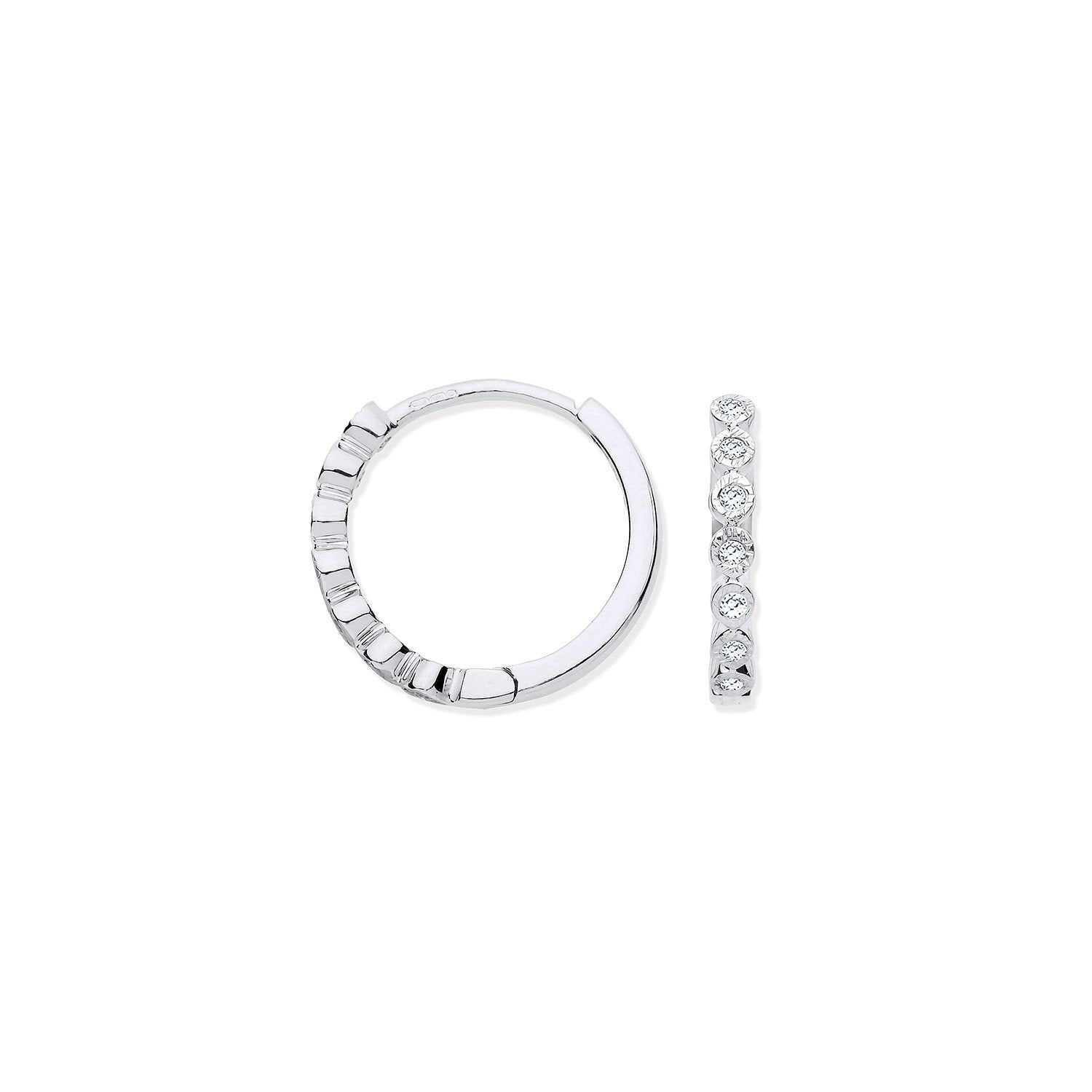 Exuding understated elegance, these exquisite 9ct white gold diamond hoop earrings effortlessly combine classic design with modern sophistication. Crafted from the finest 9ct gold, they boast a brilliant cut diamond totalling 0.10ct, set in a sturdy rhodium coating for a luxurious finish.