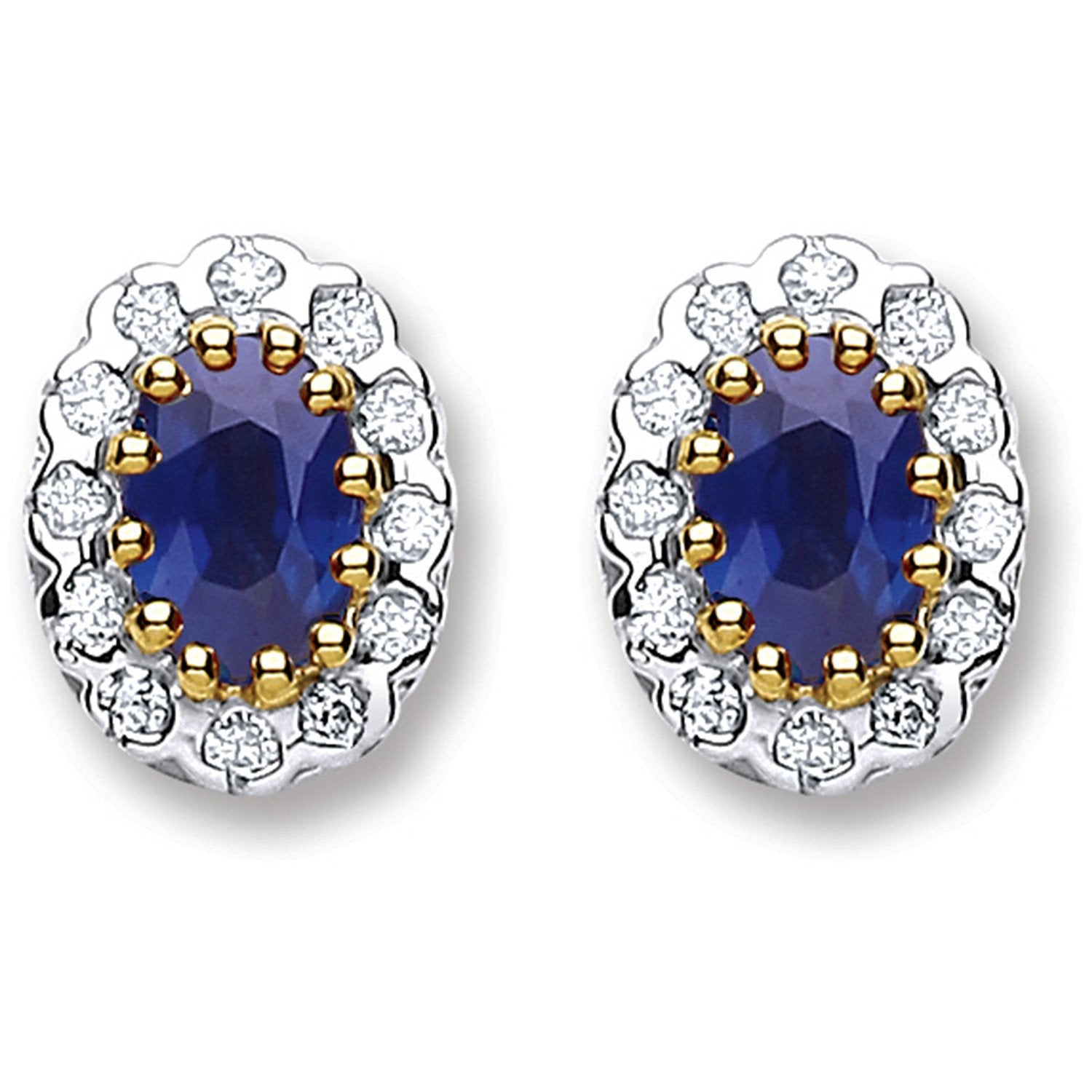 9ct Yellow Gold 0.20ct Diamond & 0.90ct Sapphire Stud Earrings