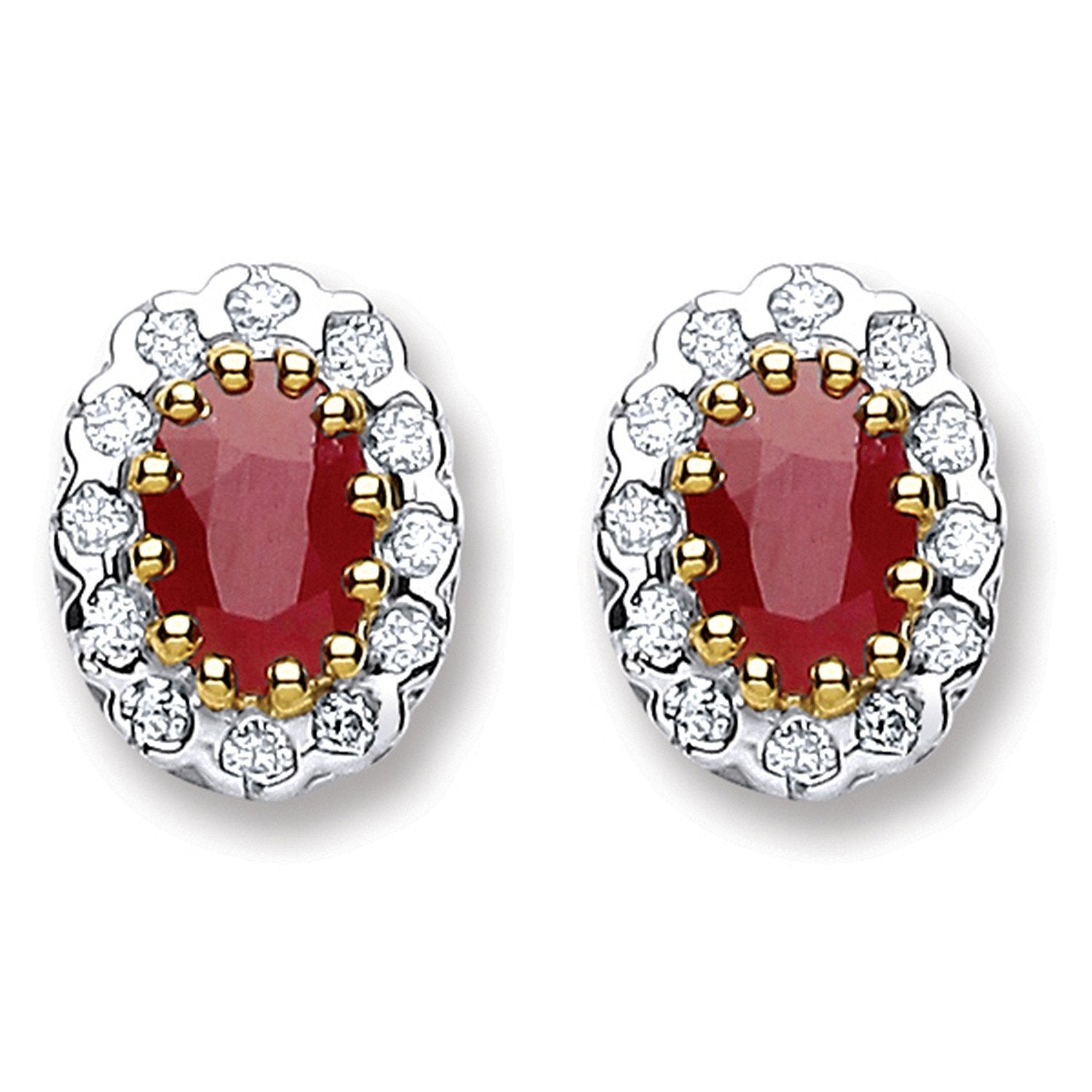 9ct Yellow Gold 0.20ct Diamond & 1.20ct Ruby Stud Earrings