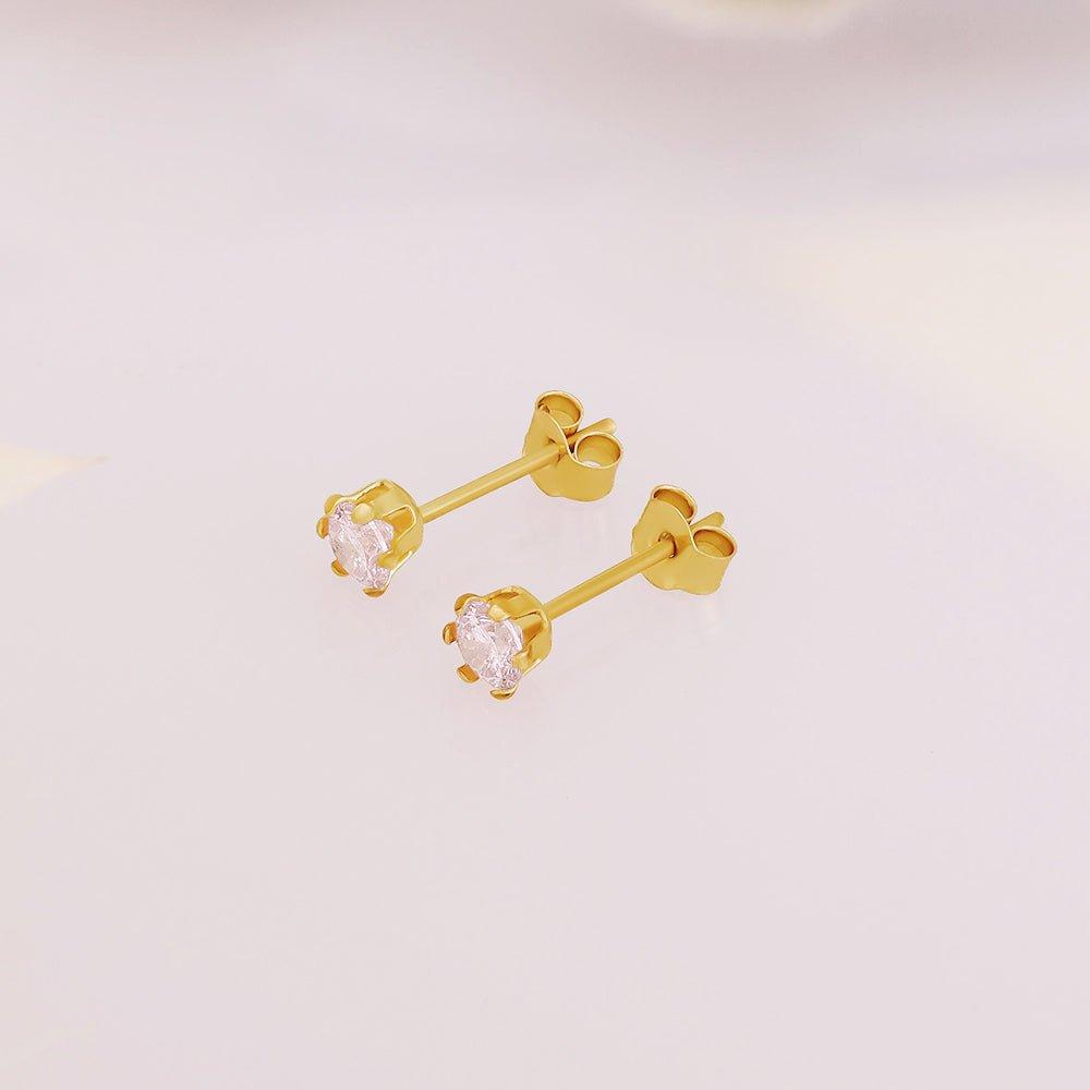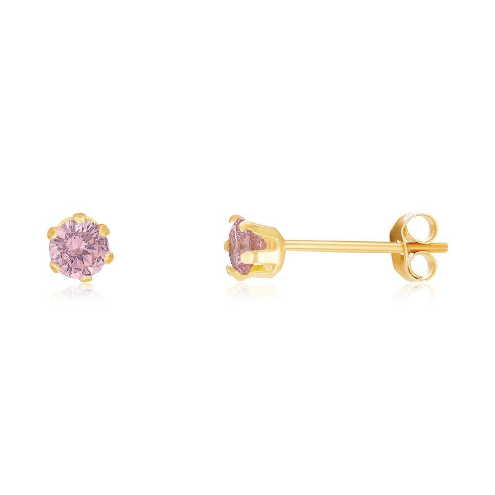 9ct Yellow Gold 3mm Claw Set Pink Cubic Zirconia Studs