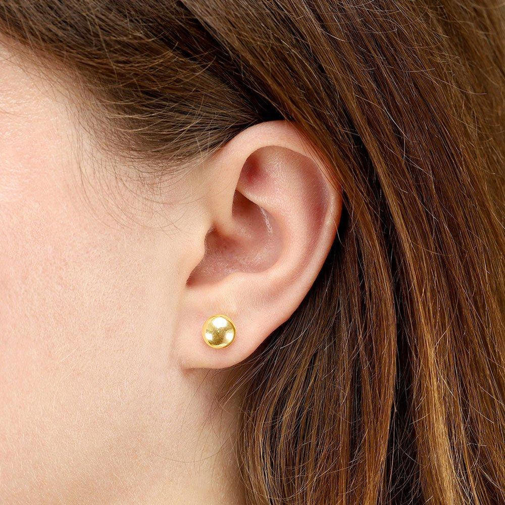 These exquisite 9ct Yellow Gold 8mm Button Ball Studs are a timeless addition to any jewellery collection, effortlessly combining classic simplicity with understated elegance. Their subtle shine and smooth texture make them a versatile choice for everyday wear or special occasions.
