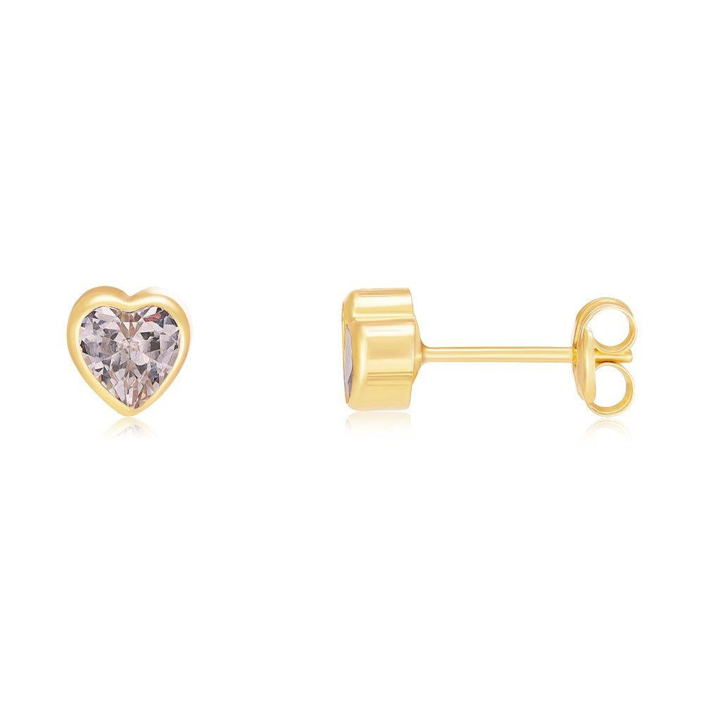 9ct Yellow Gold Rubover Set Heart Shaped Cubic Zirconia Studs