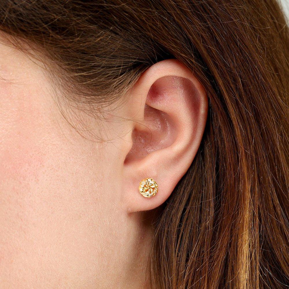 Exuding understated sophistication, these 9ct Yellow, White & Rose Gold Tight Knot Studs effortlessly combines classic design with modern charm. Their beautifully crafted knots showcase the warm, rich tones of the multi-coloured gold, creating a truly eye-catching effect.