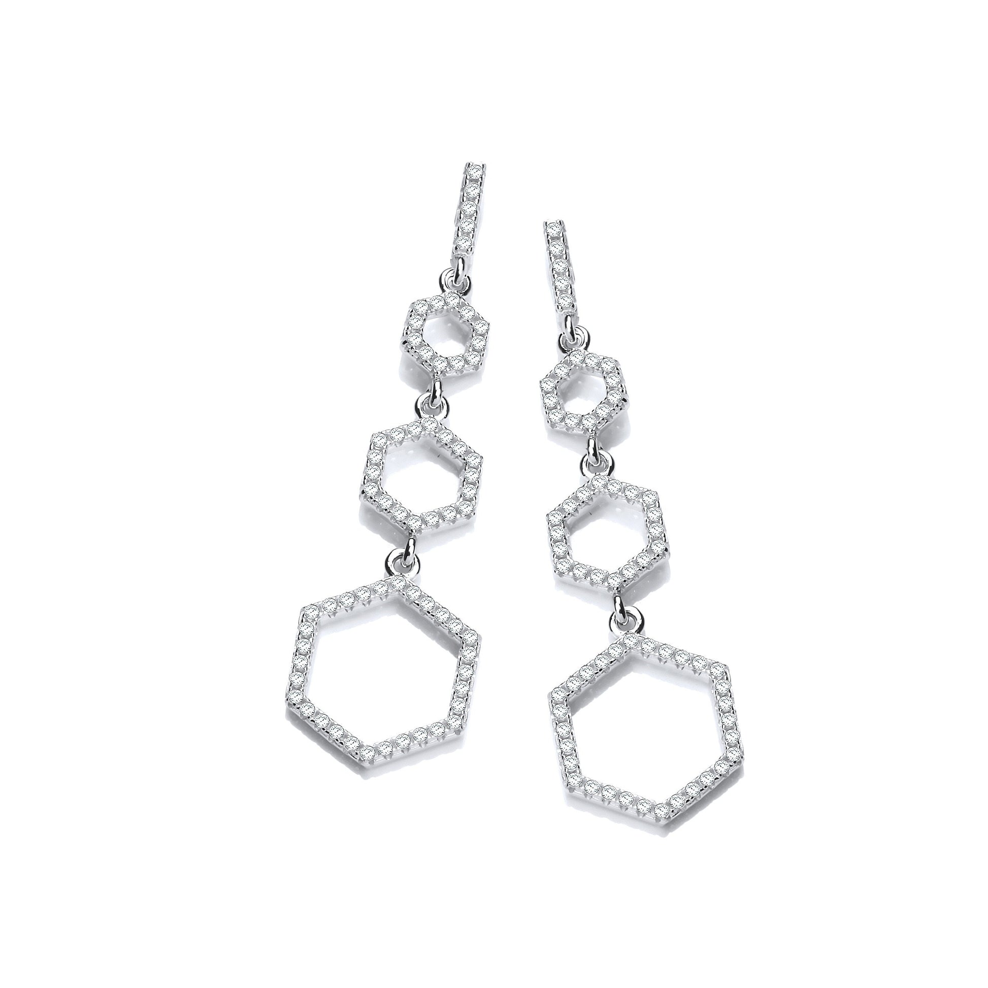 Honeycomb Style Silver Cubic Zirconia Earrings