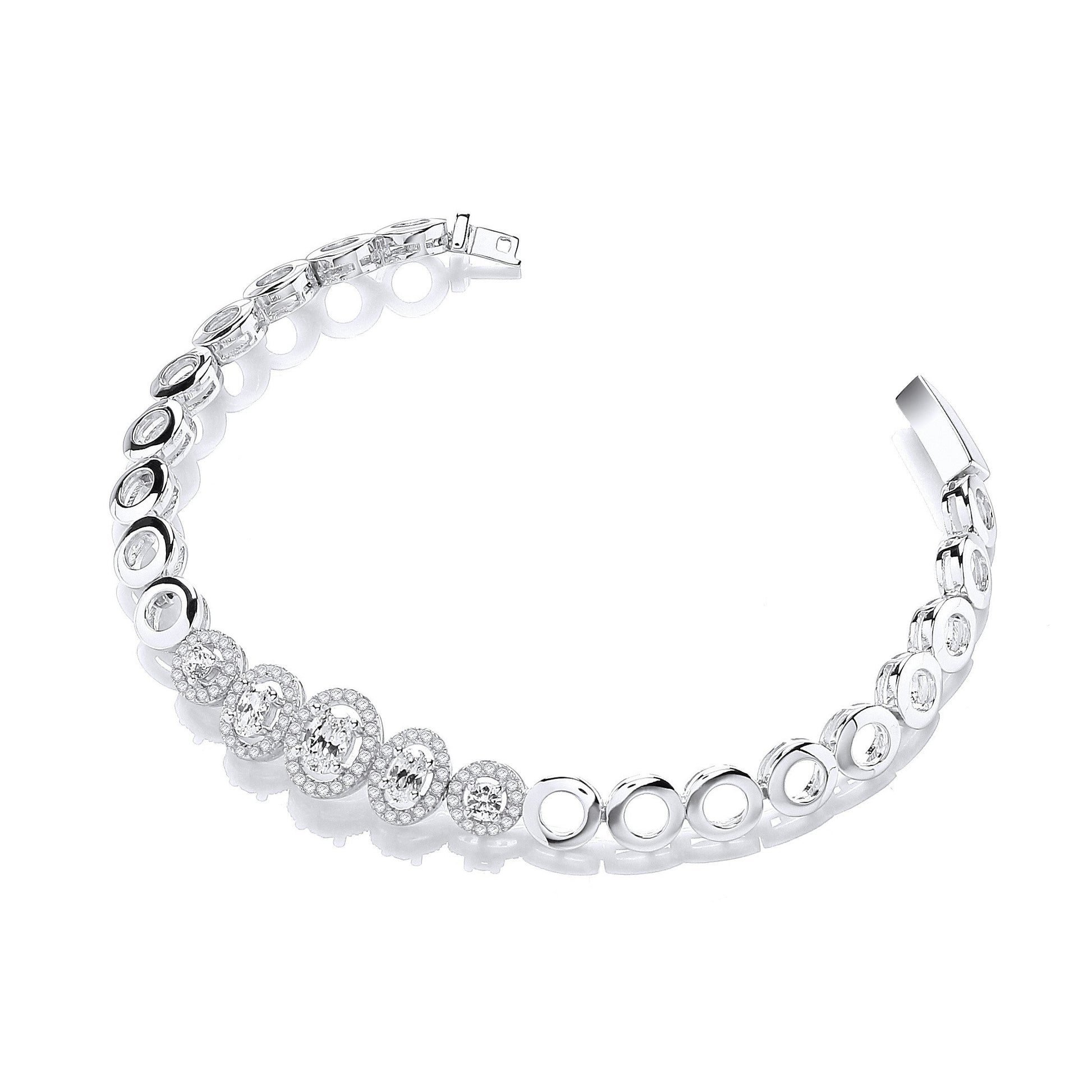 This exquisite bracelet features a delicate arrangement of micro pave cubic zirconia stones, set in sterling silver with a luxurious rhodium coating for a radiant finish. The combination of 3 oval and 2 round stones creates a beautiful, eye-catching design that effortlessly combines elegance with understated sophistication.
