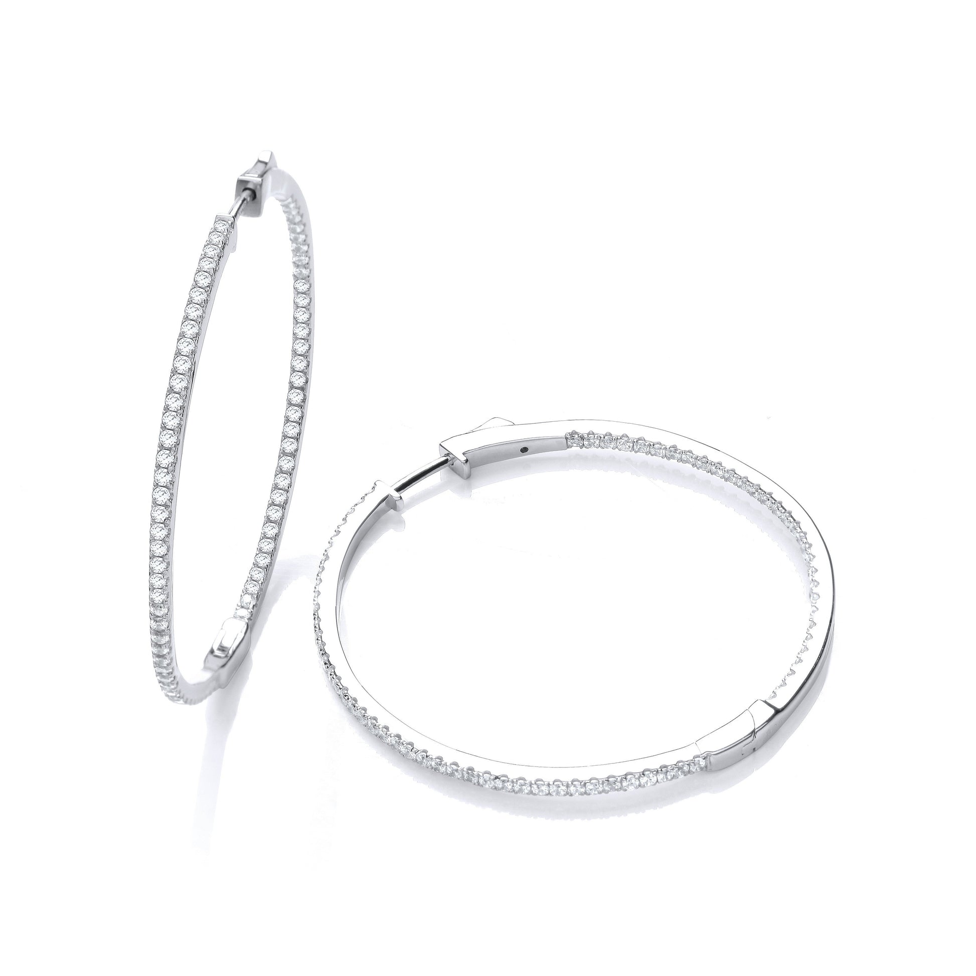 Exuding understated sophistication, these Micro Pave Big Round Hoop Cubic Zirconia Earrings effortlessly combine elegance with a touch of modernity. Crafted from sterling silver with a rhodium coating, they boast a radiant white hue that complements any style.