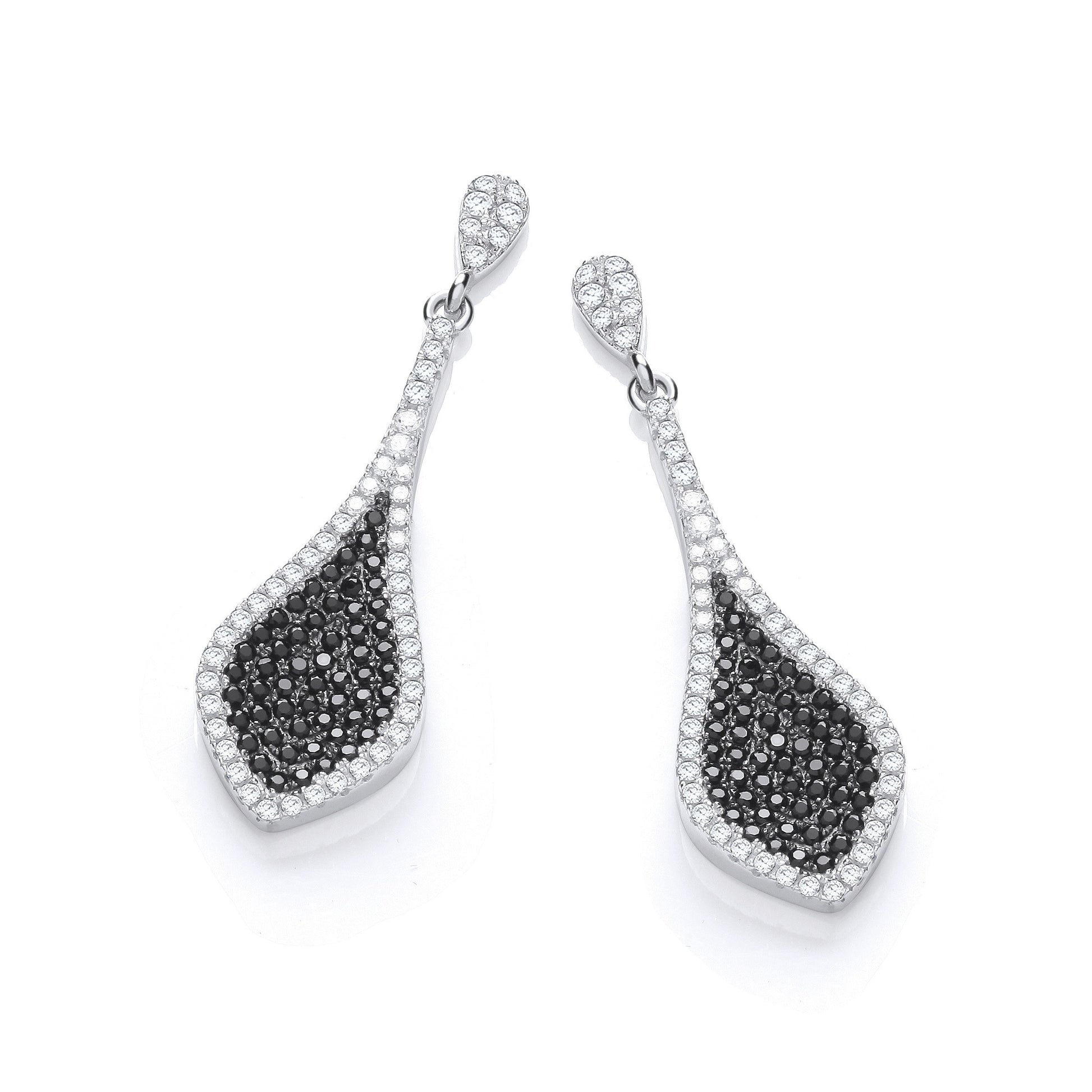Micro Pave Black & Clear Cubic Zirconia Drop Earrings