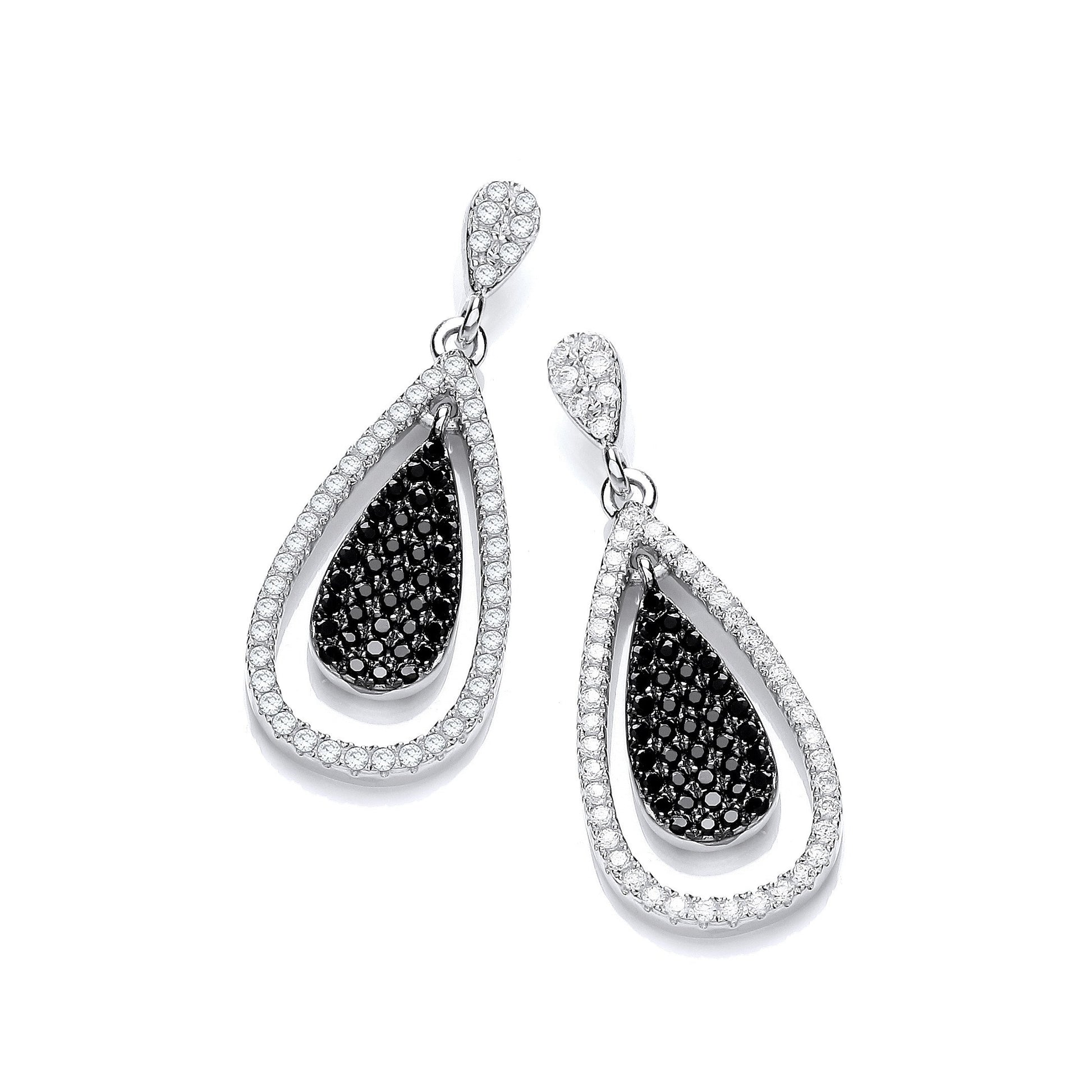 Micro Pave Black & White Cubic Zirconia Drop Earrings - 11mm (HNN-8D5EBA)