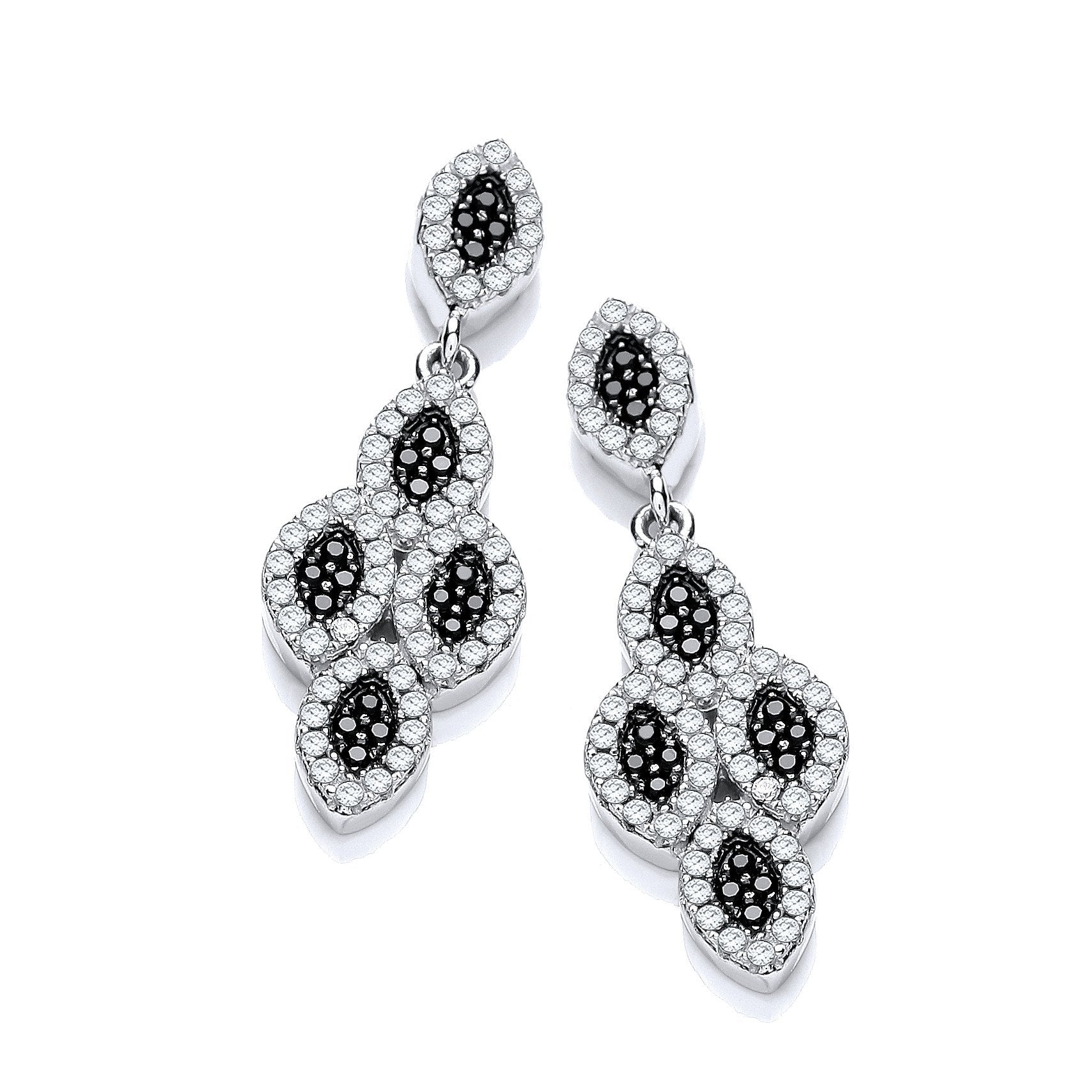 Micro Pave Black & White Cubic Zirconia Drop Earrings - 9mm (HNN-F9A5C1)