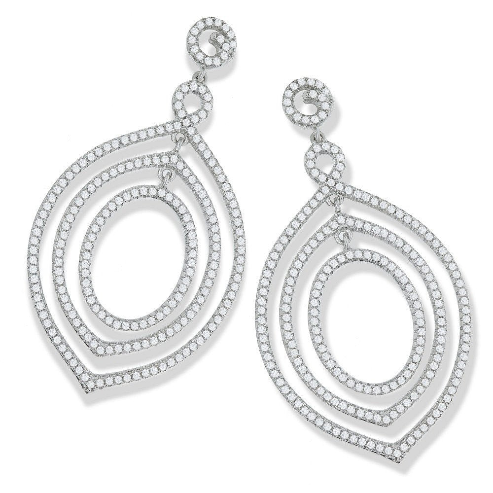 Crafted from sterling silver with a rhodium coating, these earrings feature exquisite round Cubic Zirconia stones set in a micro pave setting, adding a touch of glamour to any outfit. Their drop design creates a sense of movement, catching the light as she moves.