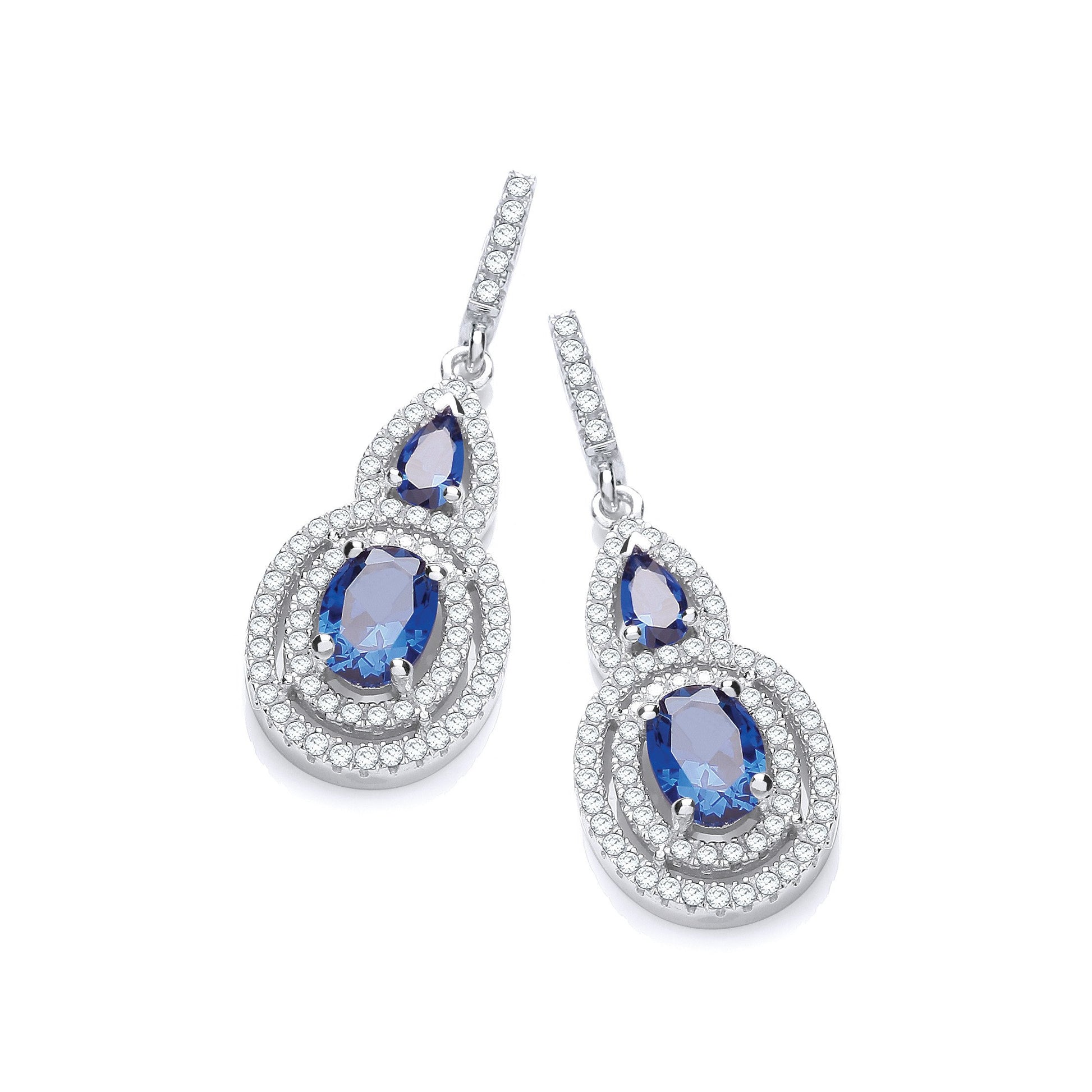 Micro Pave Sapphire & White Cubic Zirconia Drop Earrings