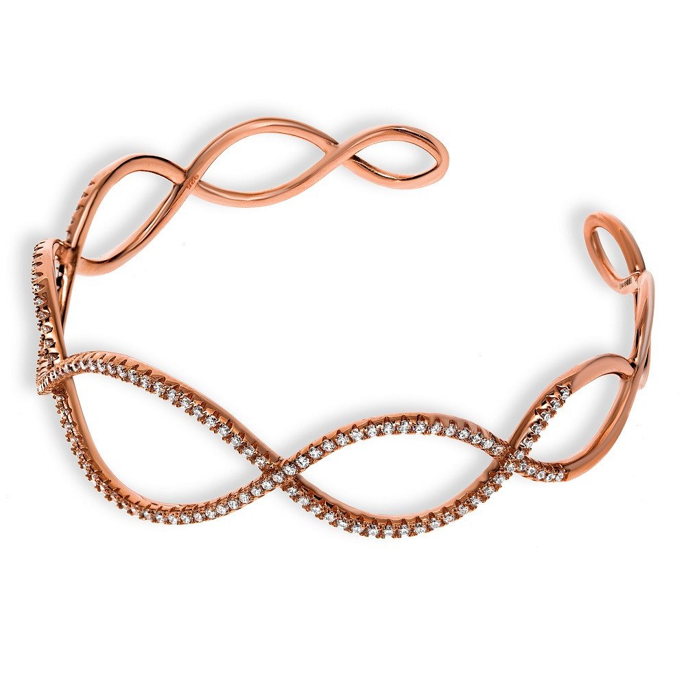Rose Coated Silver Figure of 8 Bangle with Cubic Zirconias