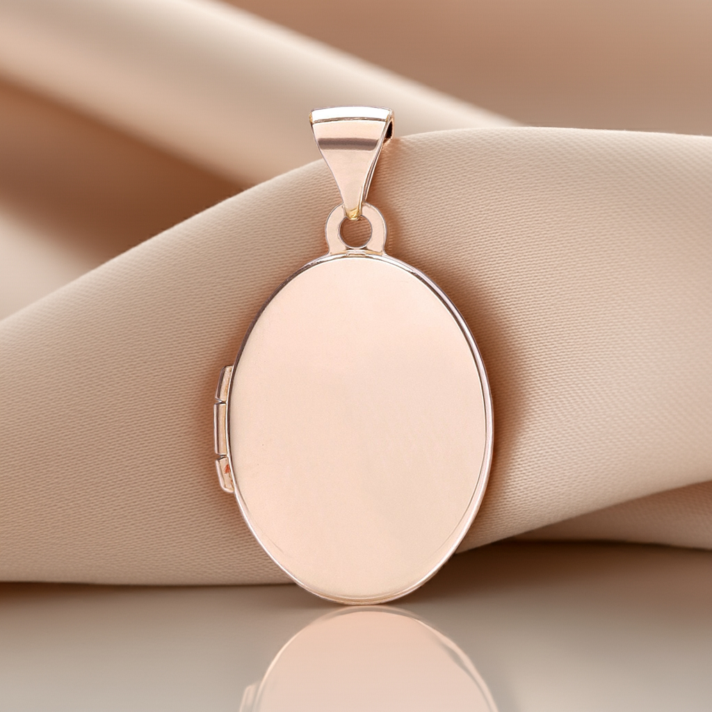 This exquisite rose gold oval shaped plain locket is a masterclass in understated elegance, perfect for indulging in a touch of everyday sophistication. Crafted from 9ct gold, its warm, rosy hue exudes a sense of refinement and poise.