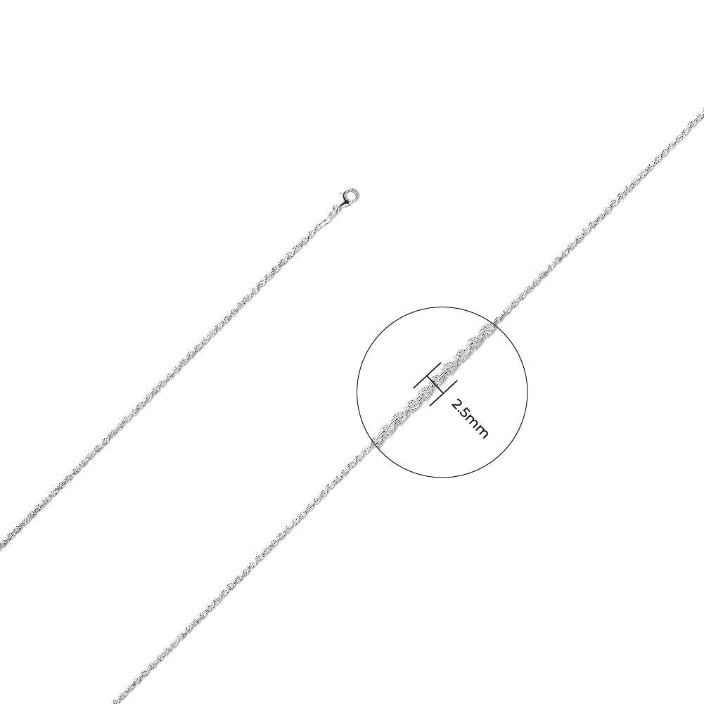 Indulging in a touch of everyday sophistication, this exquisite Silver 2.5mm Rope Chain is a timeless addition to any jewellery collection. Its delicate rope design exudes understated elegance, perfect for dressing up or everyday wear.