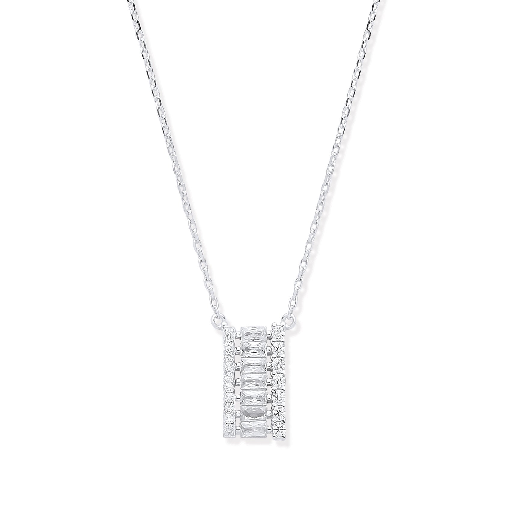 This exquisite silver asymmetric cubic zirconia pendant necklace effortlessly combines understated elegance with a touch of sophistication, making it a thoughtful gift or a beautiful finishing touch for the bride-to-be.