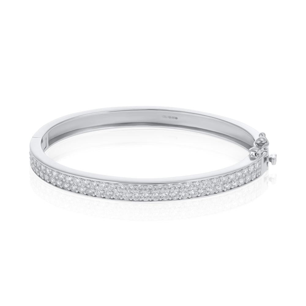 The sterling silver bangle effortlessly combines classic sophistication with modern sparkle, featuring an oval shape adorned with two rows of Cubic Zirconia that catch the light.