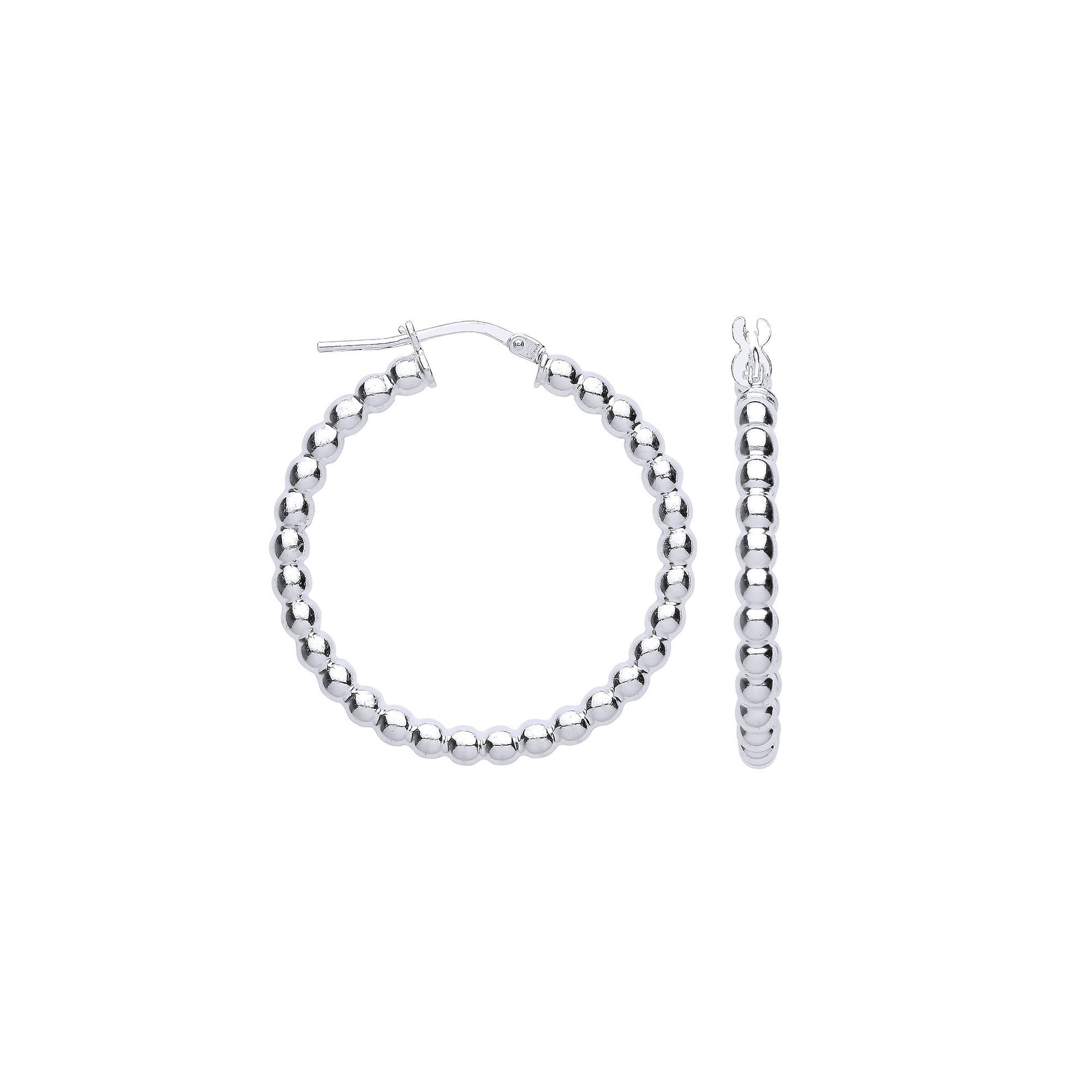 Silver Bead 31mm Hoop Earrings