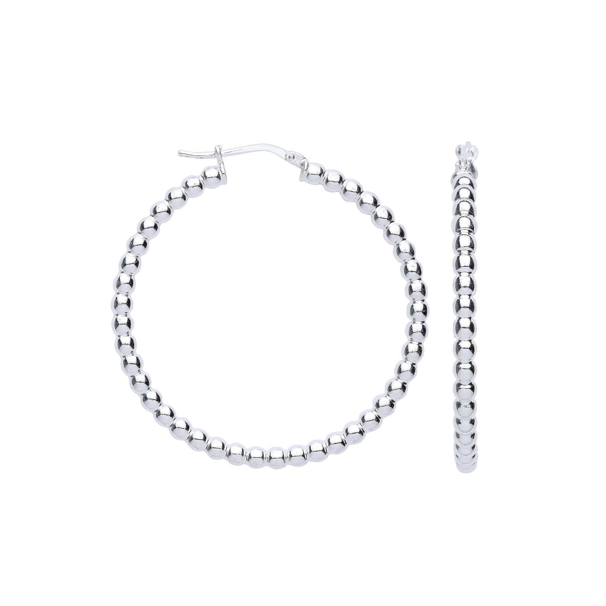 Indulging in a touch of everyday sophistication, these elegant 41mm Silver Bead Hoop Earrings add a refined finish to any outfit. Their understated charm makes them perfect for daily wear or as a special finishing touch.
