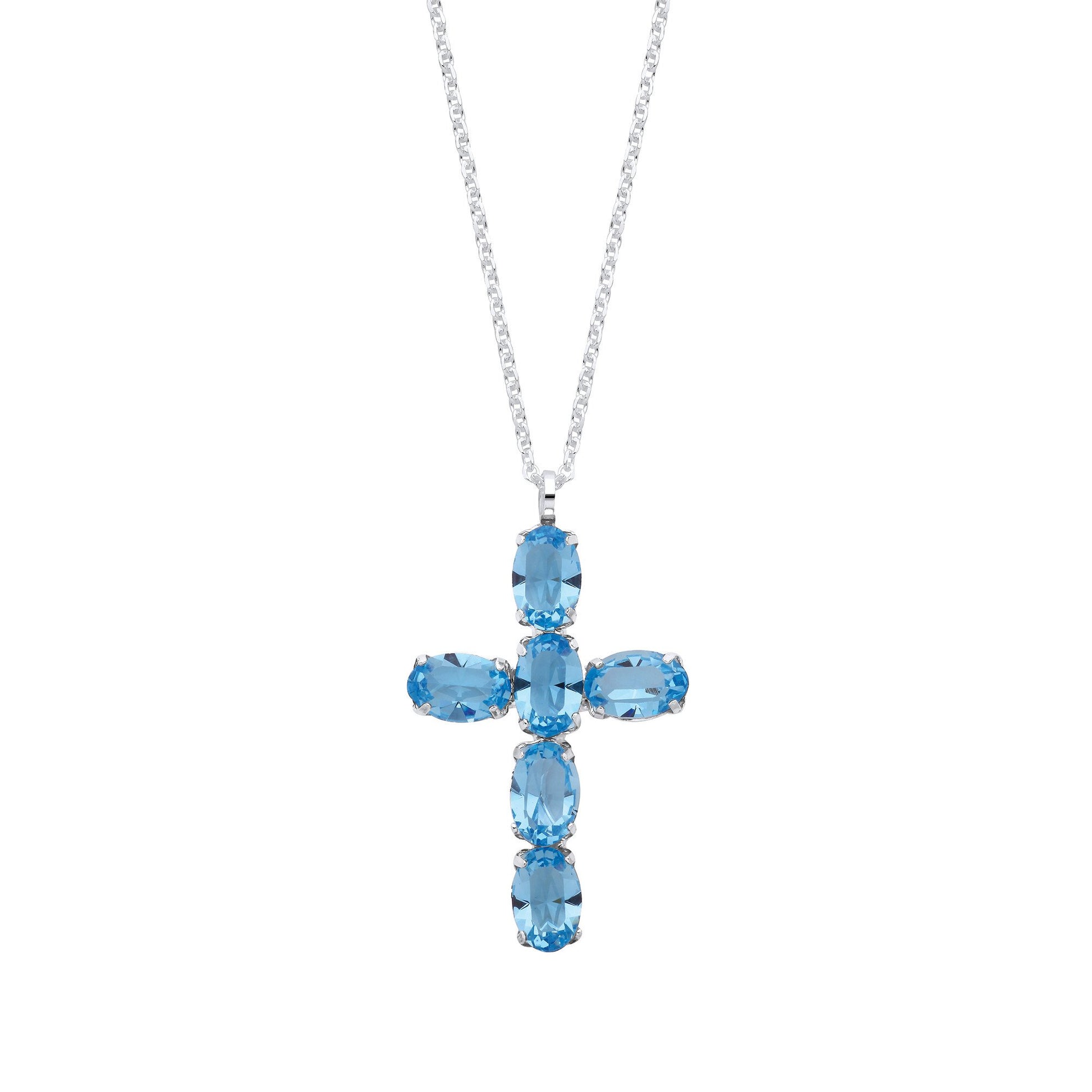Crafted from the finest silver, this beautiful pendant strikes the perfect balance between modern style and timeless tradition. The blue crystal adds a subtle pop of colour, elevating the piece to a statement accessory that's sure to turn heads.