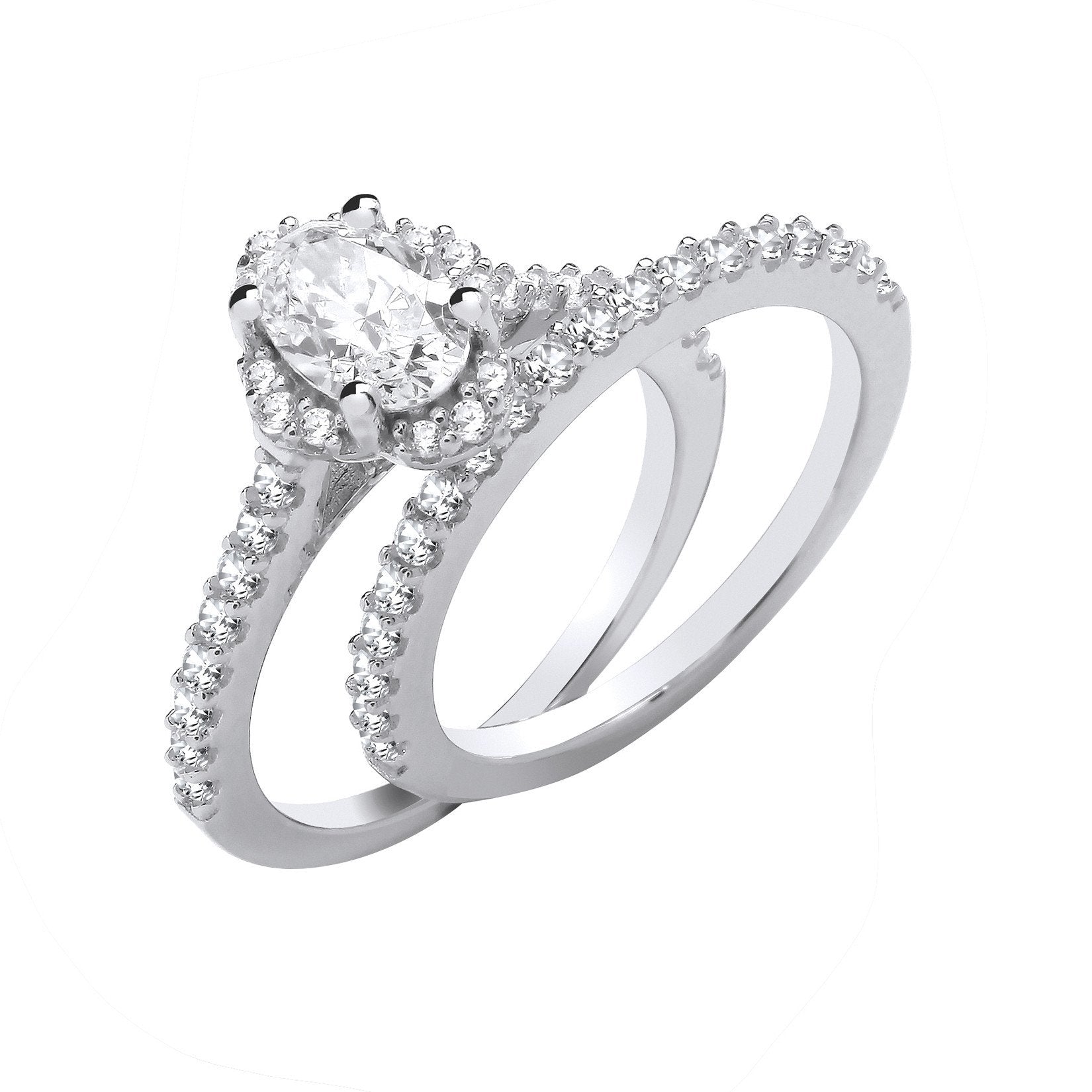 Silver Bridal Set Oval Cubic Zirconia Half Eternity Rings