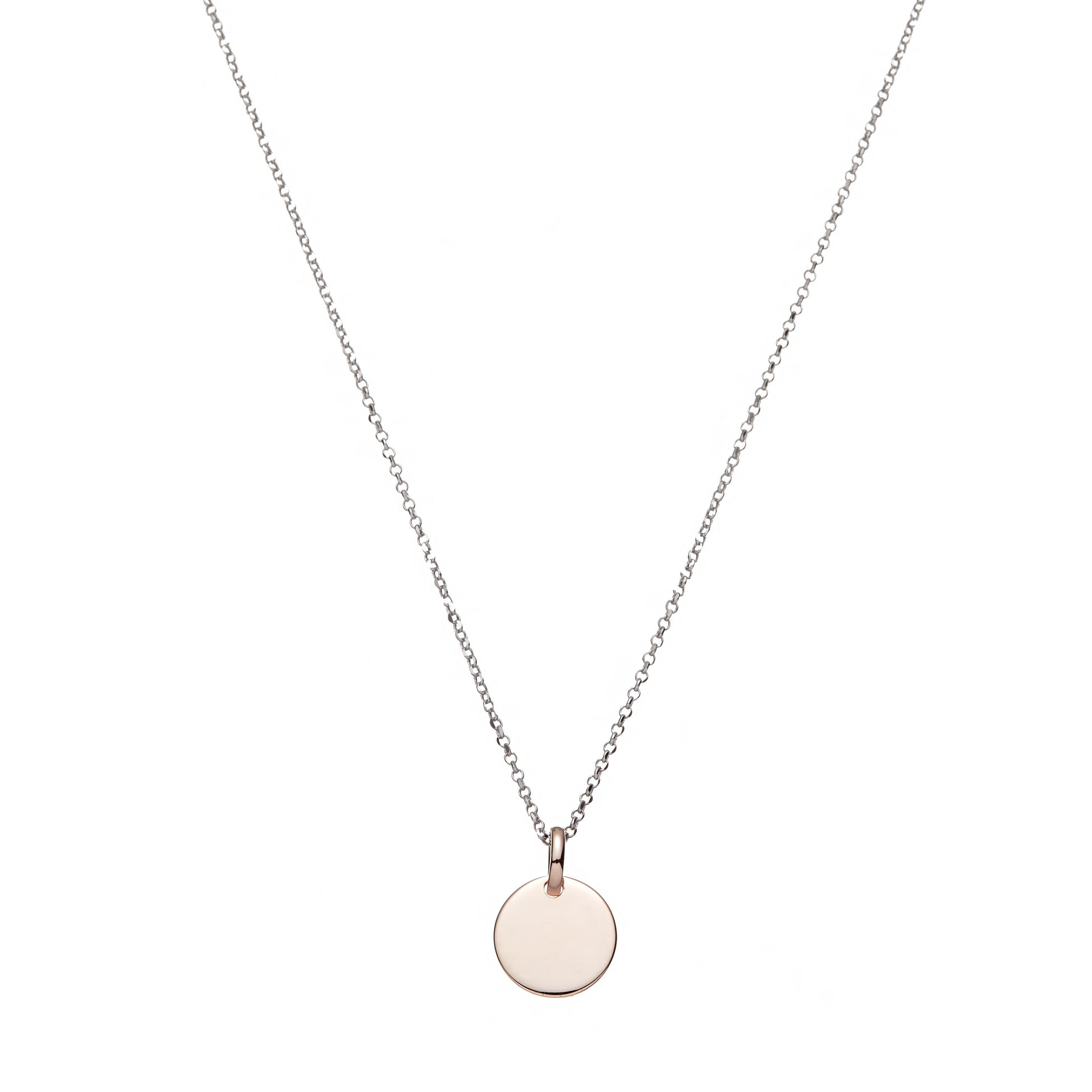 This exquisite silver chain adorned with a solid rose circle pendant strikes the perfect balance between understated elegance and modern sophistication. Its delicate design makes it an ideal choice for indulging in a touch of everyday sophistication.