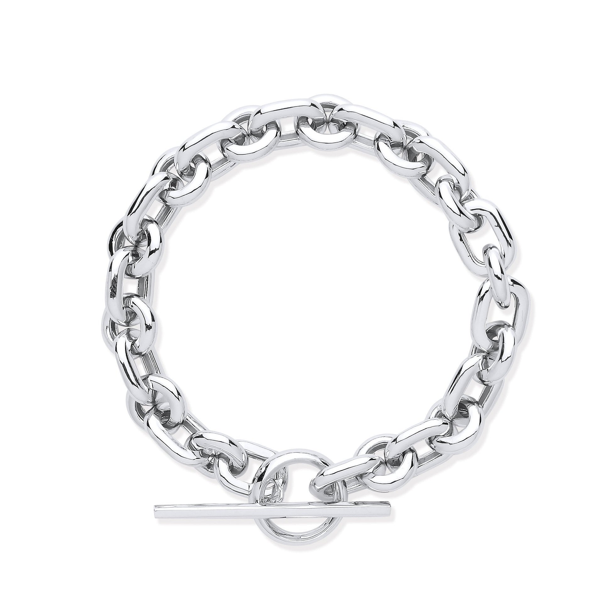 This exquisite Silver Chunky Link T-Bar Bracelet is a masterclass in understated glamour, effortlessly combining robust texture with refined elegance. Its chunky links and sleek T-bar clasp make for a striking combination.