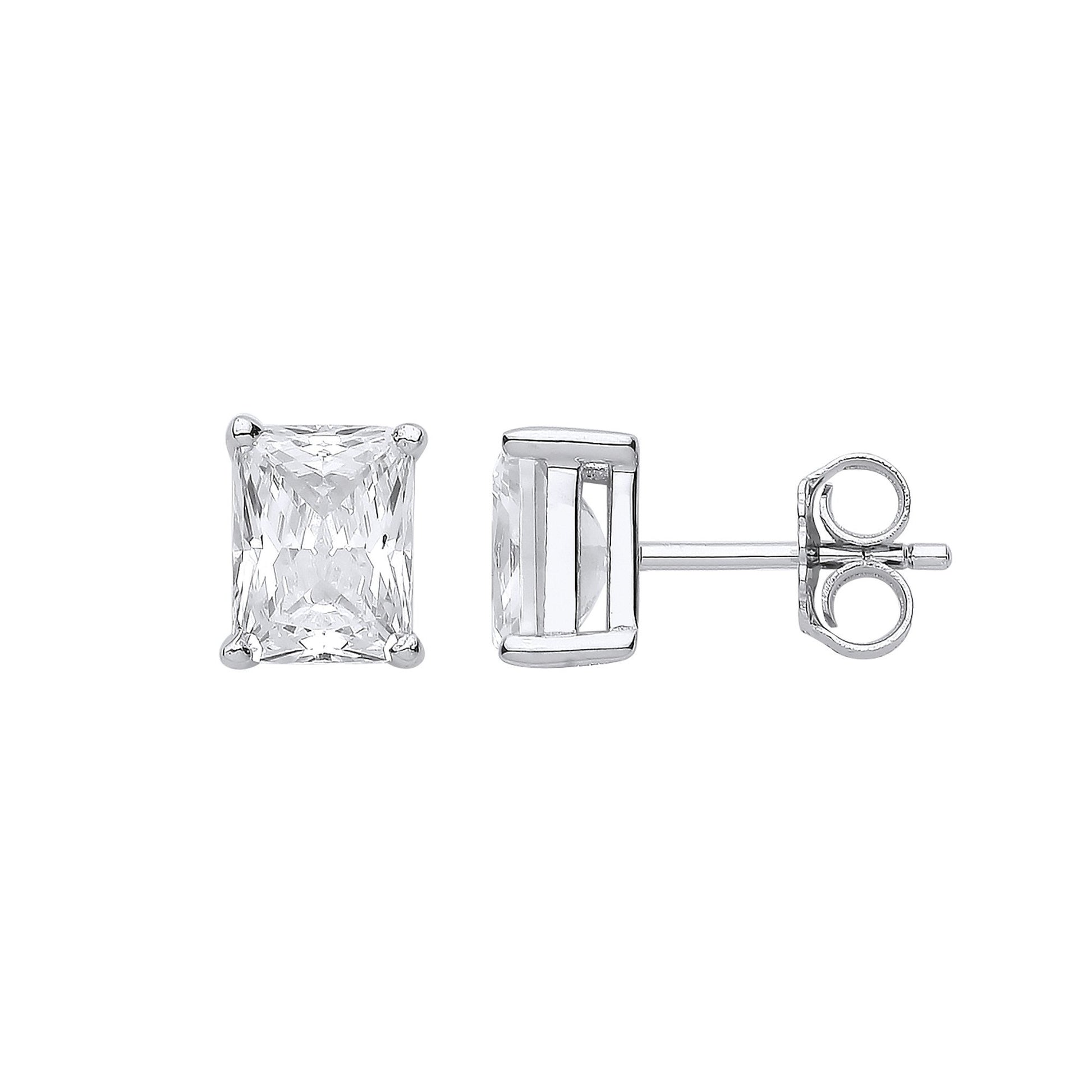 Silver Clear Cubic Zirconia Emerald Cut Stud Earrings