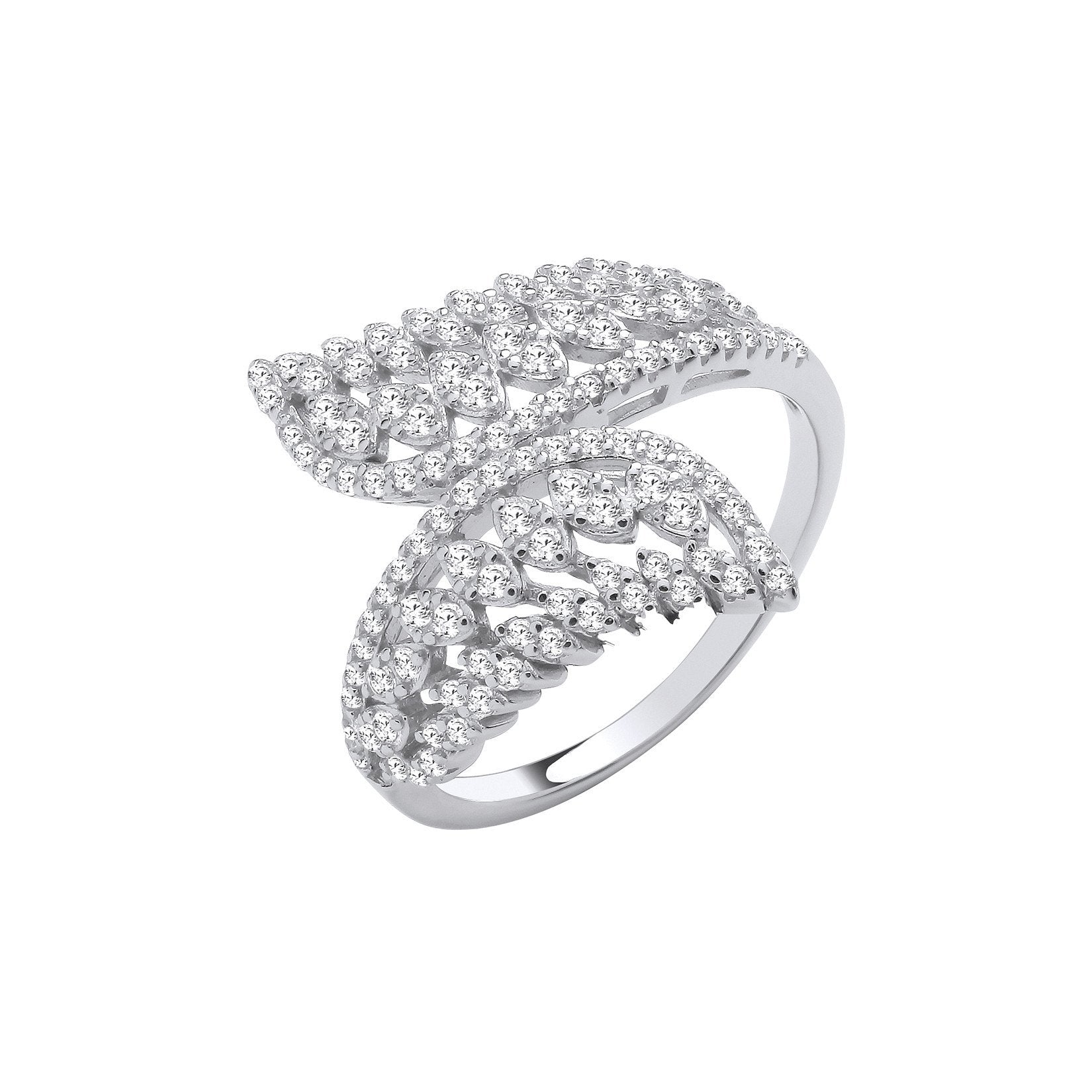 Silver Crossover Leaf Style Cubic Zirconias Rings