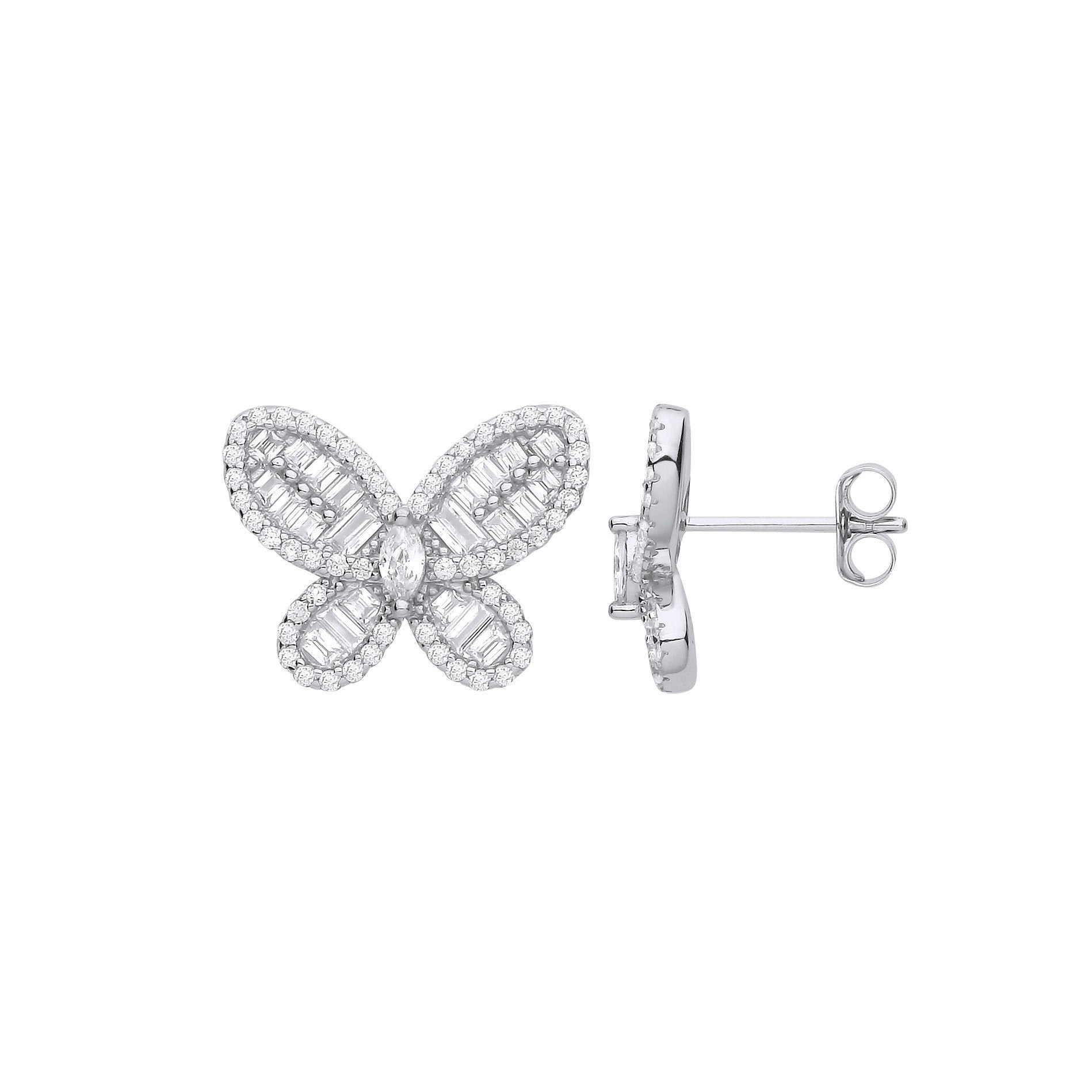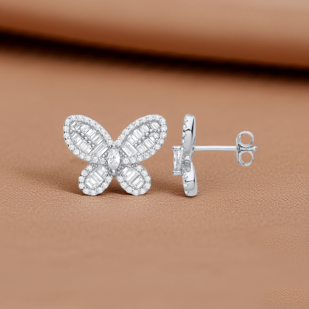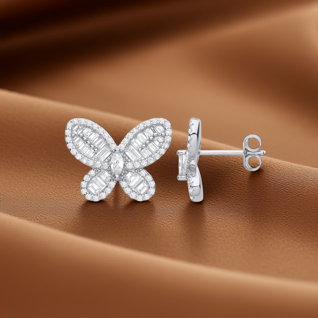 Silver Cubic Zirconia Butterfly Studs - 4.4g