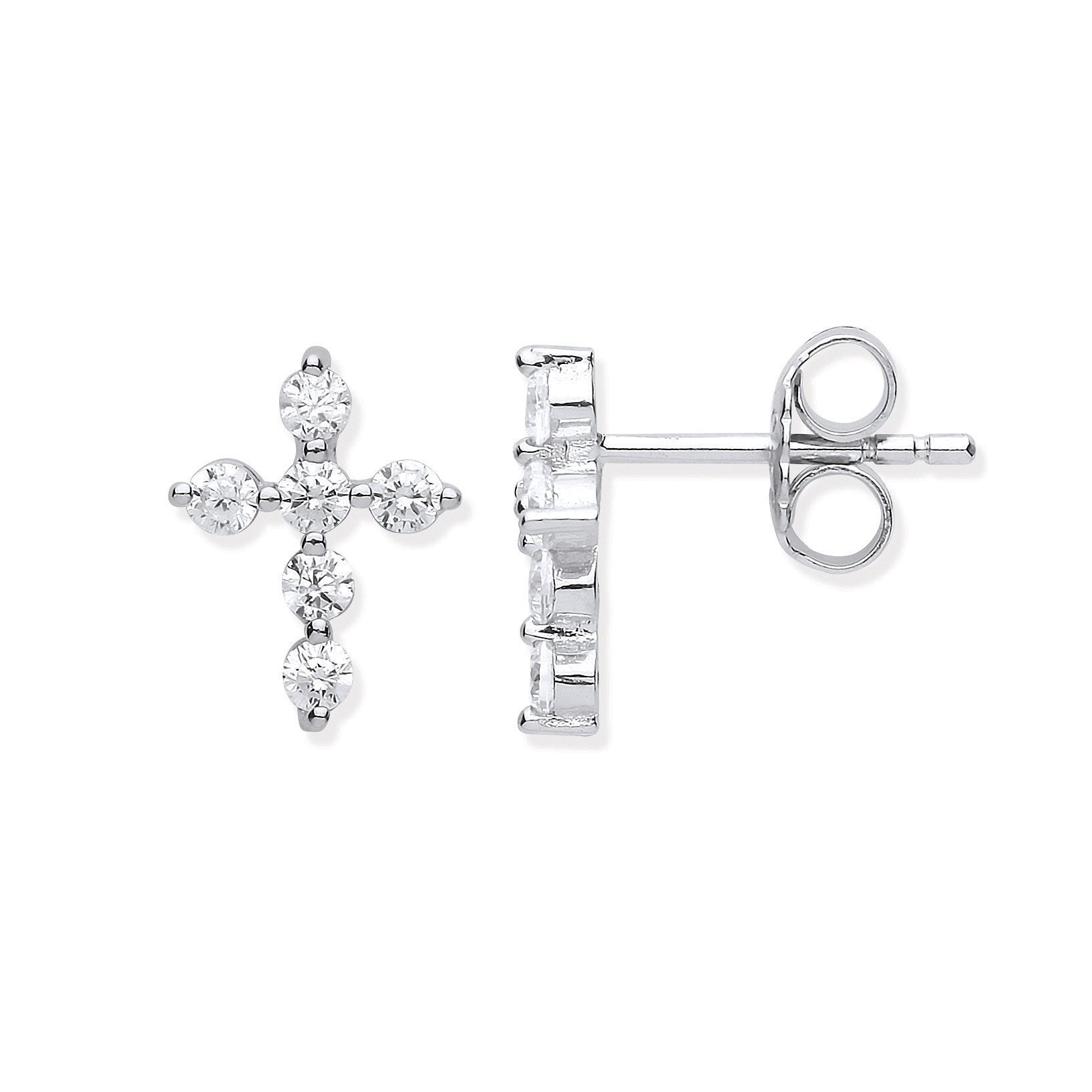 Silver Cubic Zirconia Small Cross Stud Earrings