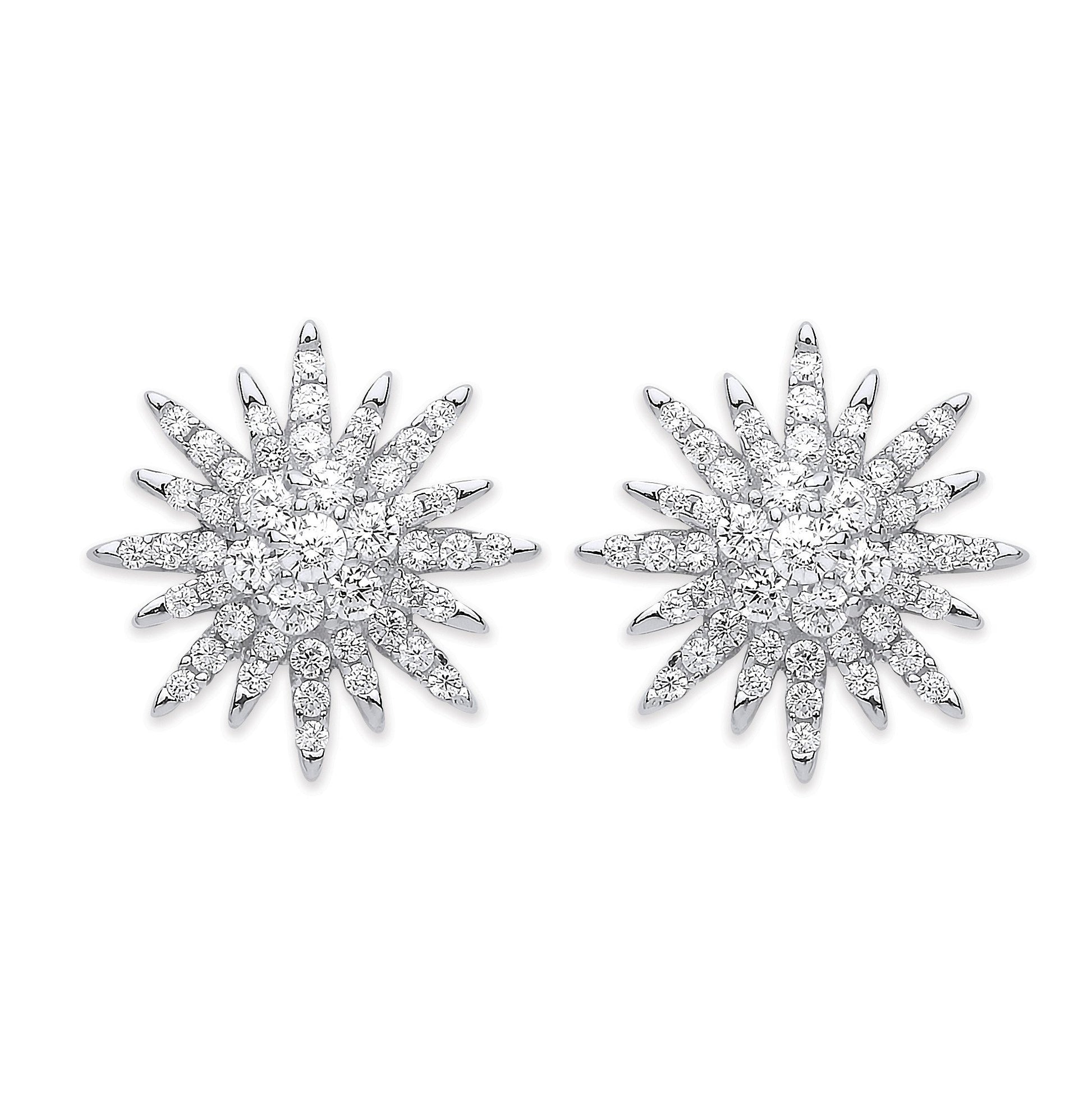 These exquisite Silver Cubic Zirconia Starburst Stud Earrings effortlessly combine modern elegance with timeless sophistication, making them a versatile addition to any jewellery collection. Crafted from sterling silver with a rhodium coating, they boast a lustrous white finish that exudes refinement.