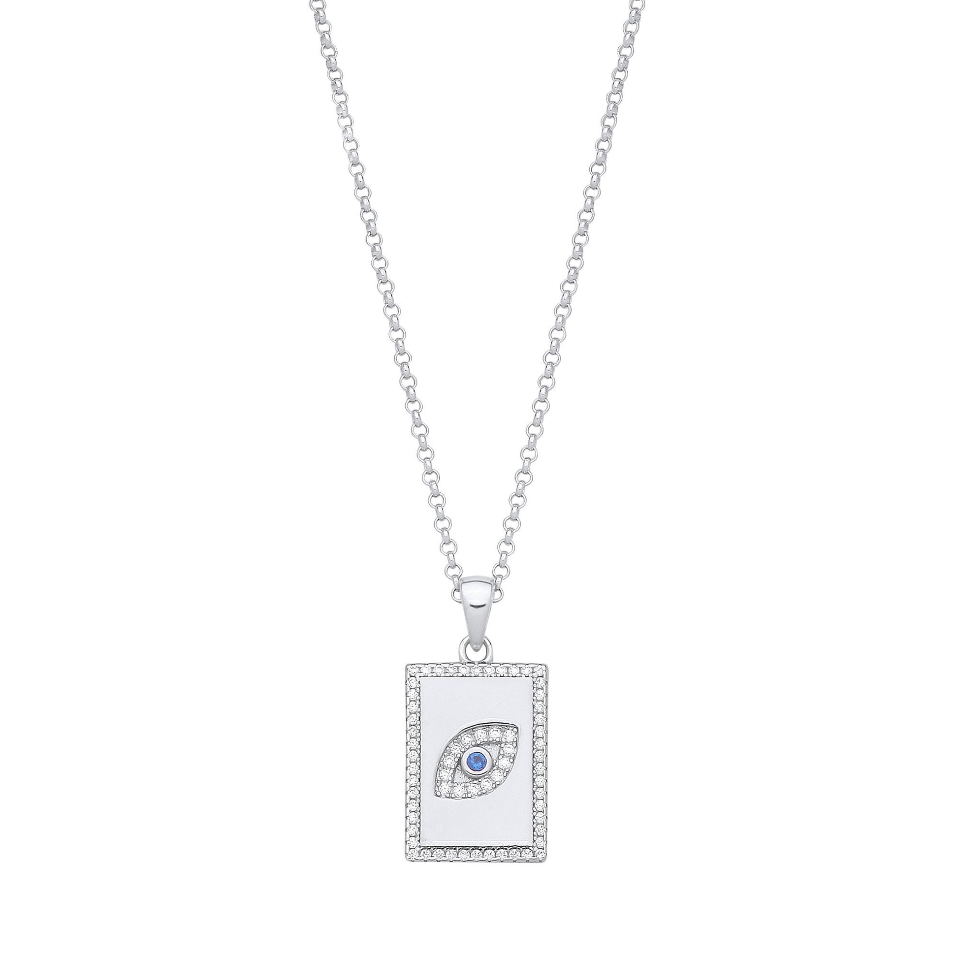Silver Dog Tag Cubic Zirconias Evil Eye Pendant on Chain