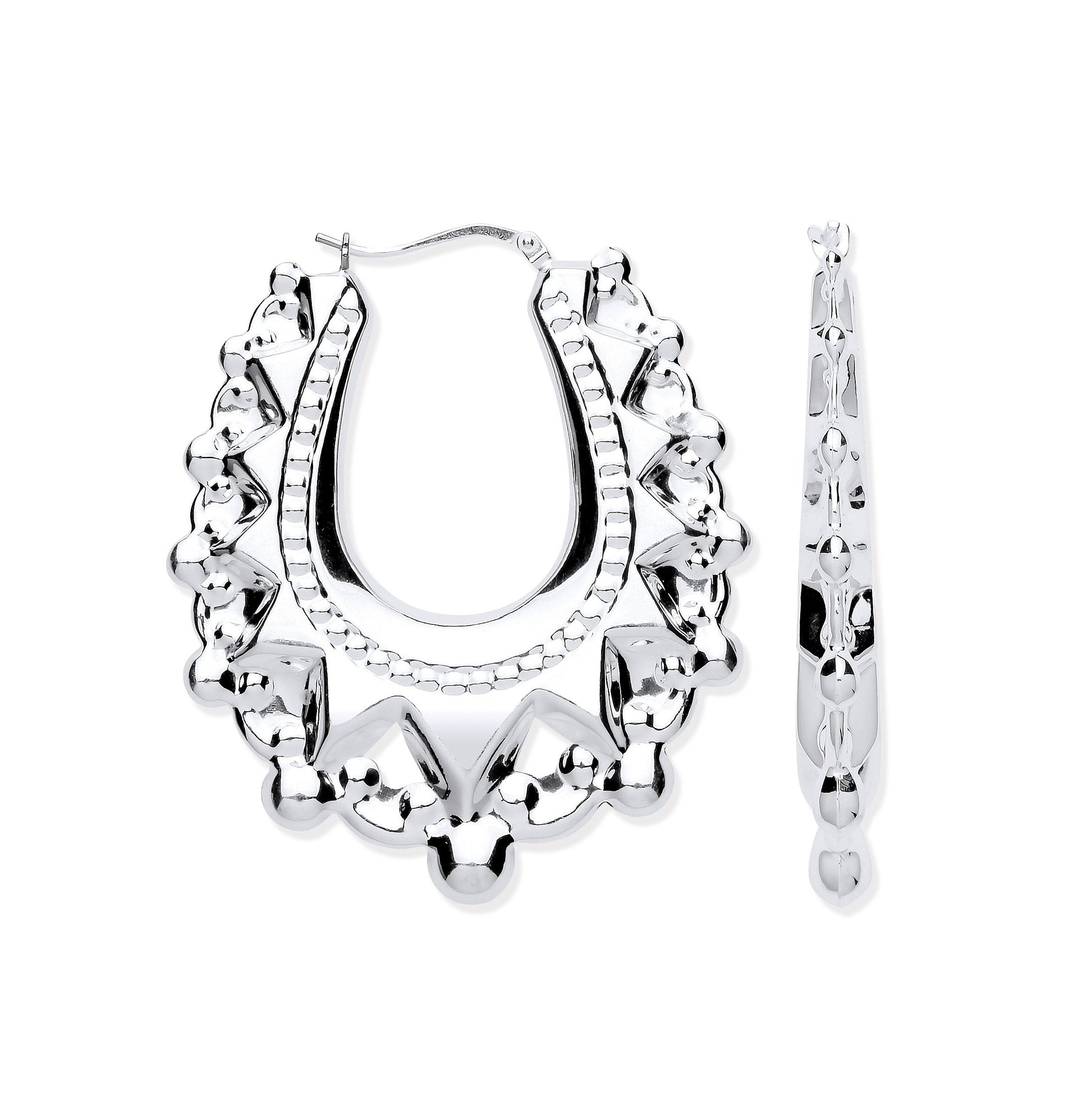 Silver Embossed Hinged Large Oval Creoles