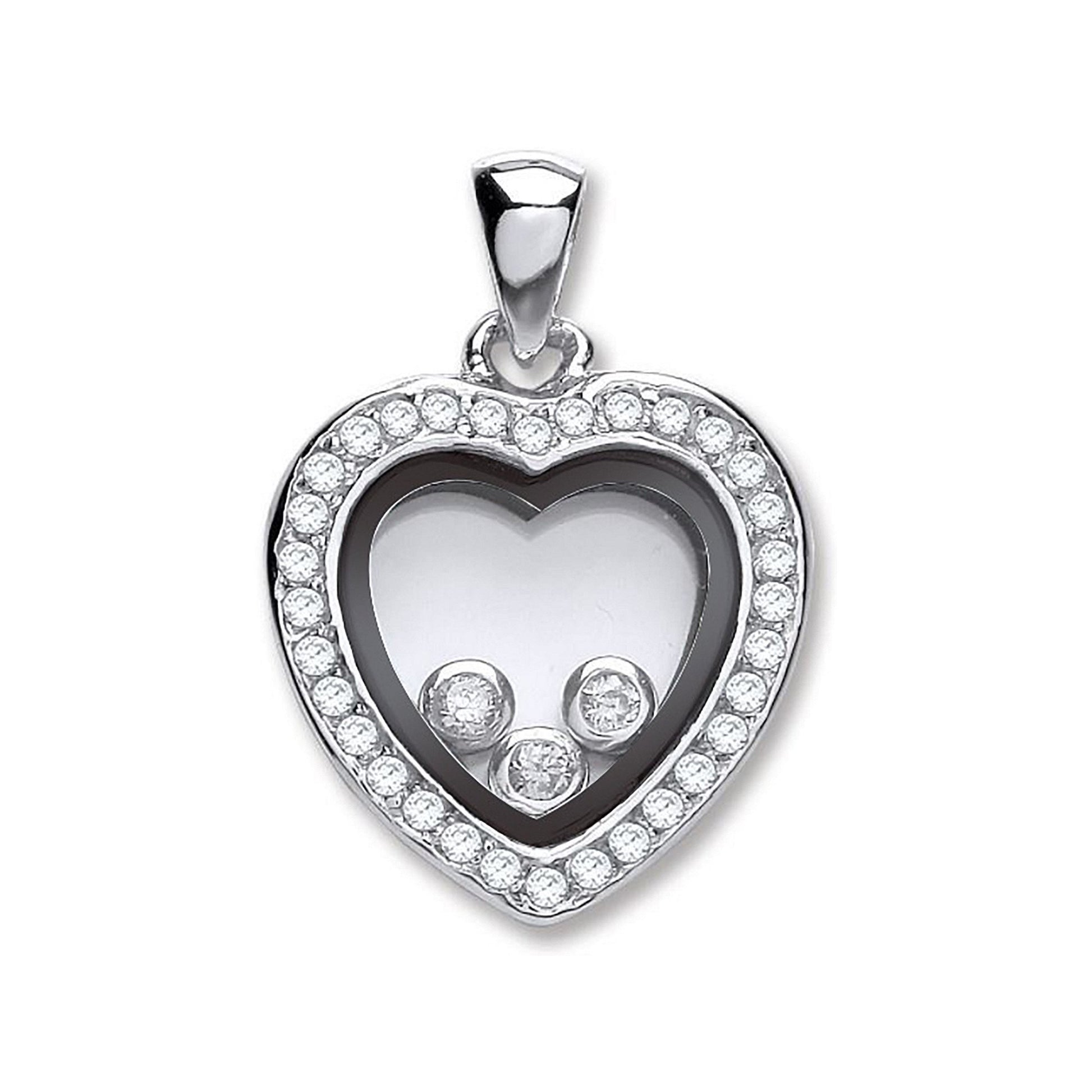 Silver Floating Cubic Zirconia Heart Pendant - 3.5g