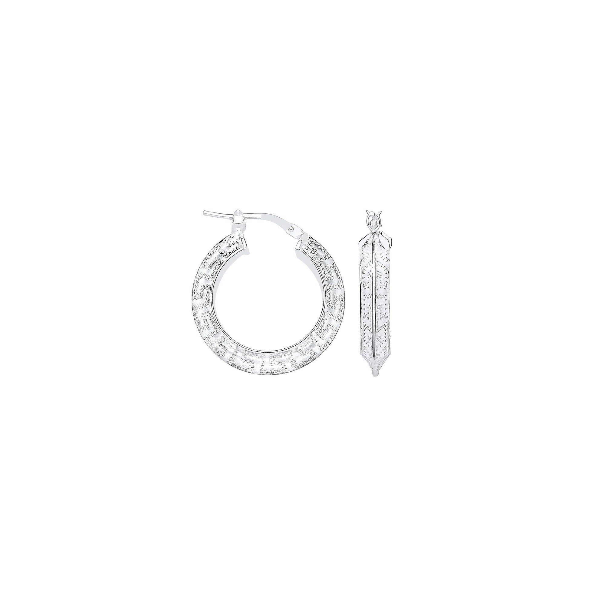 These exquisite silver Greek Key 15mm hoop earrings are a timeless choice, perfect for adding a touch of classic elegance to any outfit. Effortlessly combines traditional design with modern sophistication, making them suitable for both everyday wear and special occasions.