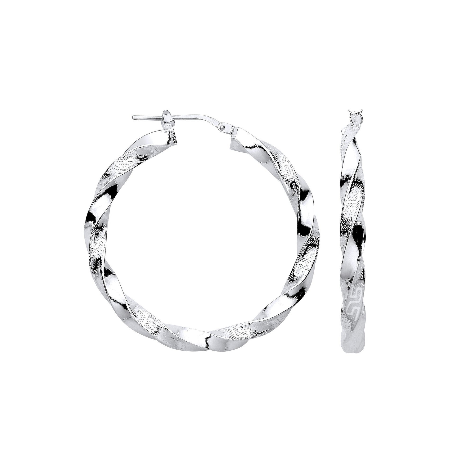 Silver Greek Key Twist Hoop 37.0mm Earrings
