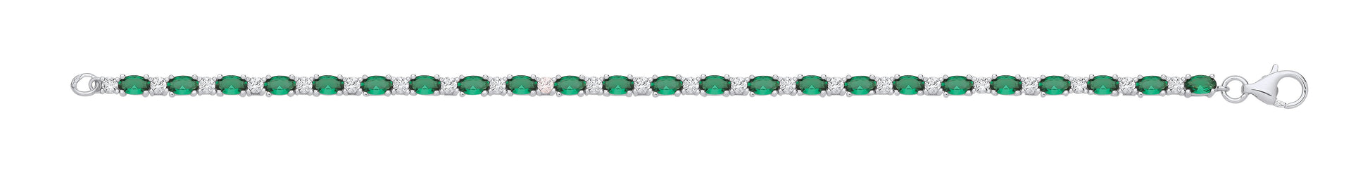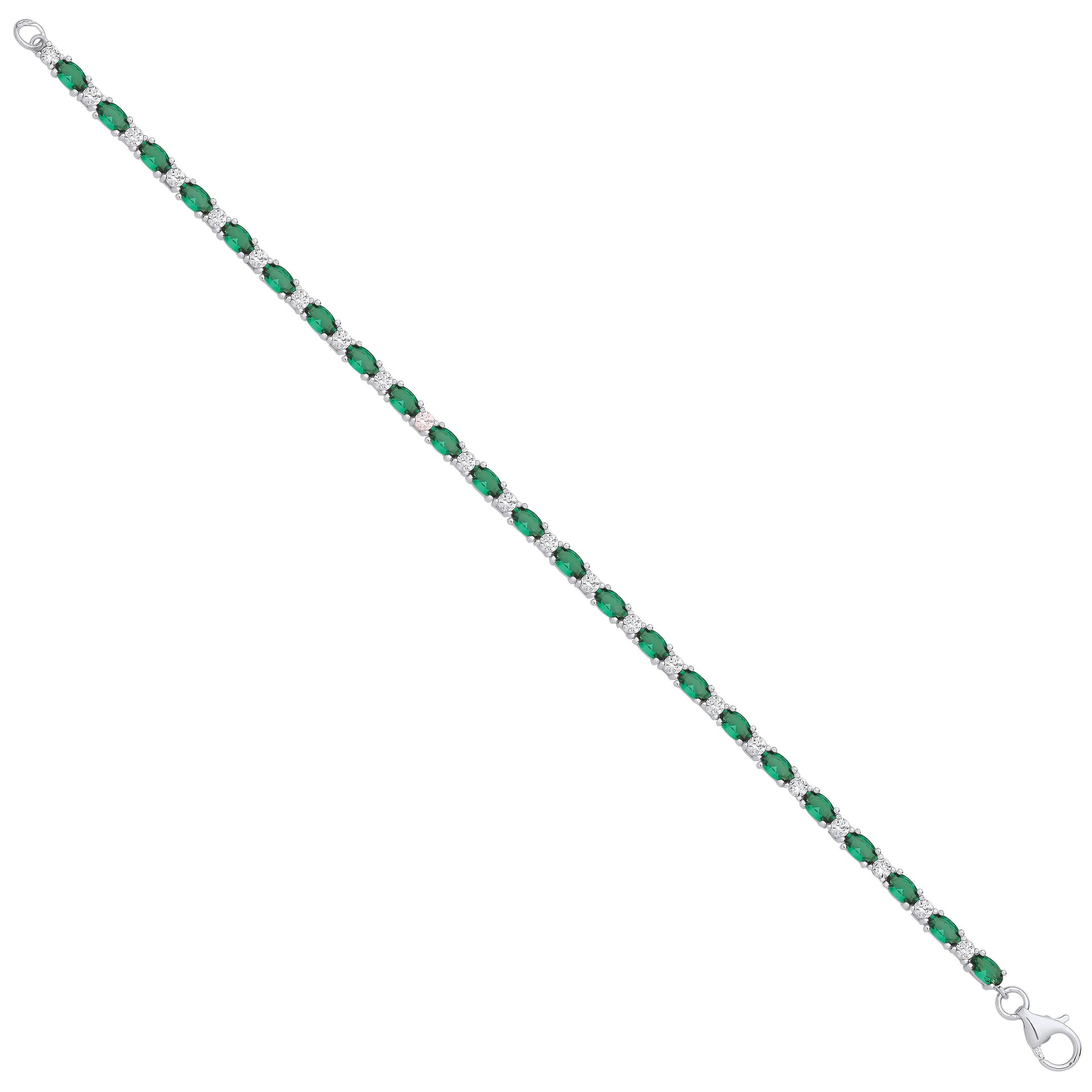 Silver Green & Clear Cubic Zirconia Silver Tennis Ladies Bracelet