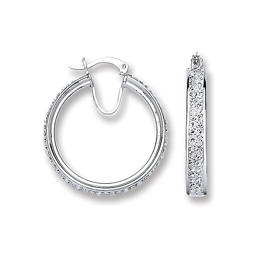 Silver Medium Hoop Crystal Earrings