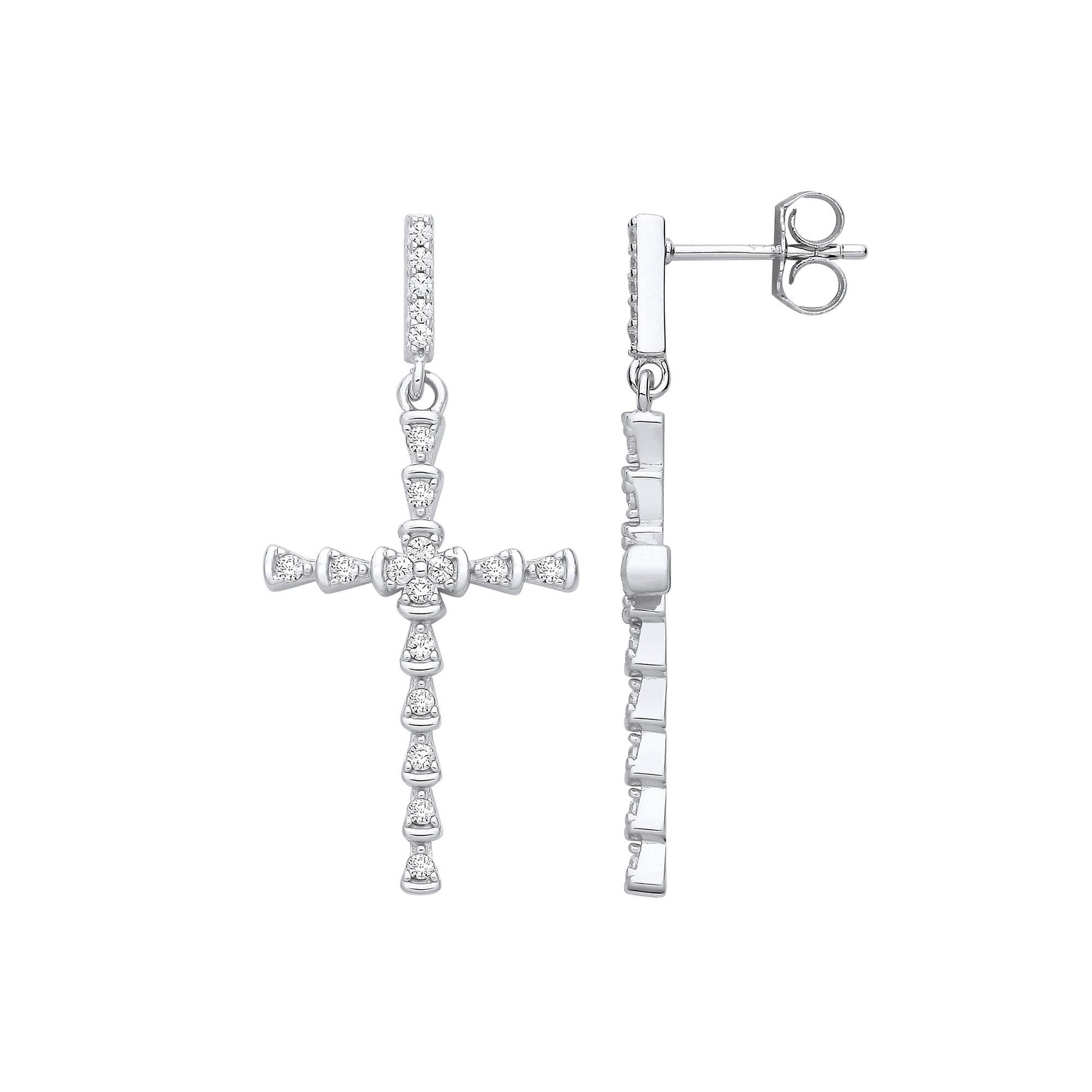 This exquisite silver cross earring, adorned with Cubic Zirconia, strikes the perfect balance between understated elegance and subtle sparkle, making it a lovely addition to any jewellery collection.